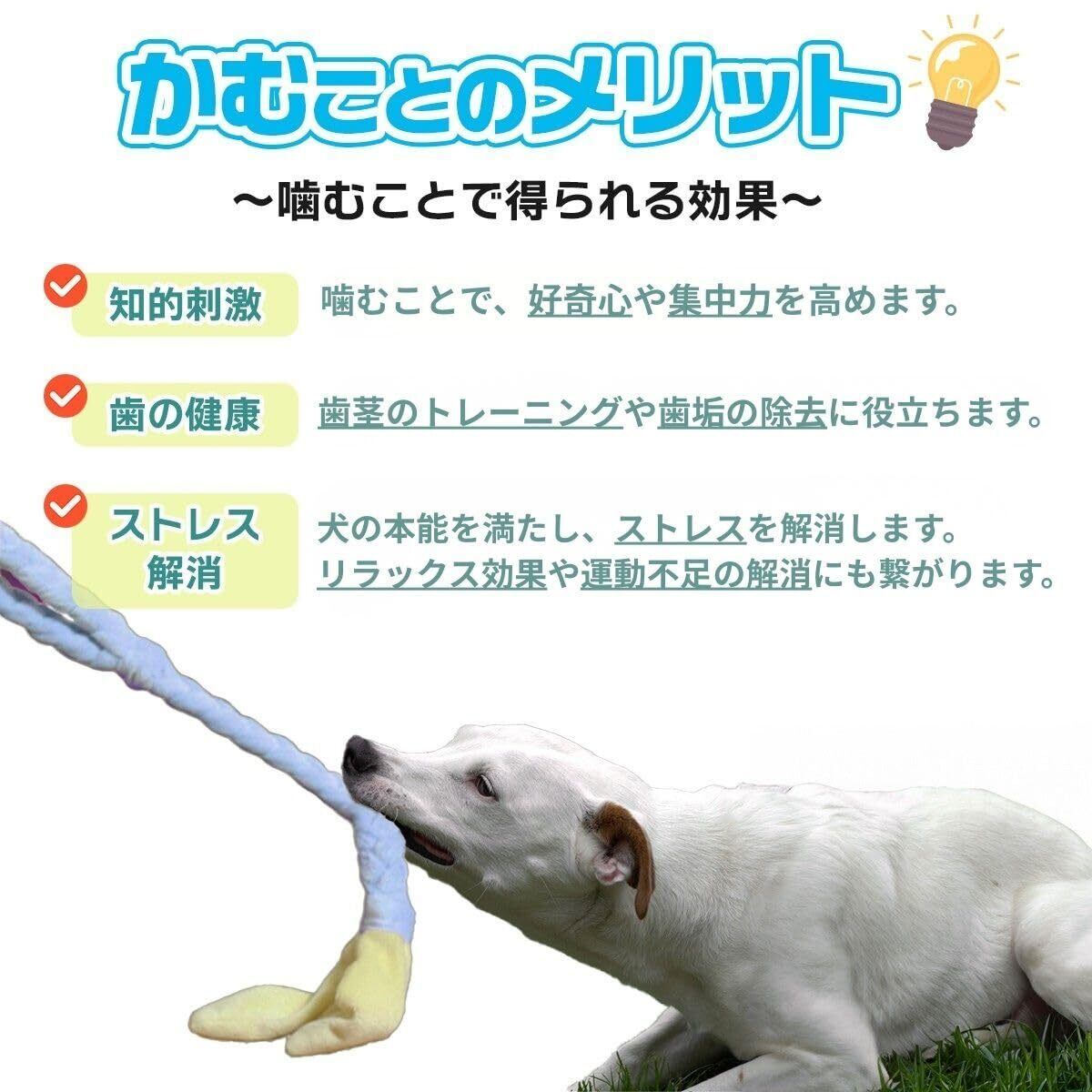 「ファーストコミニュケーショントイ」として、仔犬専用ロープ型トイ。楽しさだけでなく、咬むことの抑制やルール付けまで教えることができる優れものTOY!
