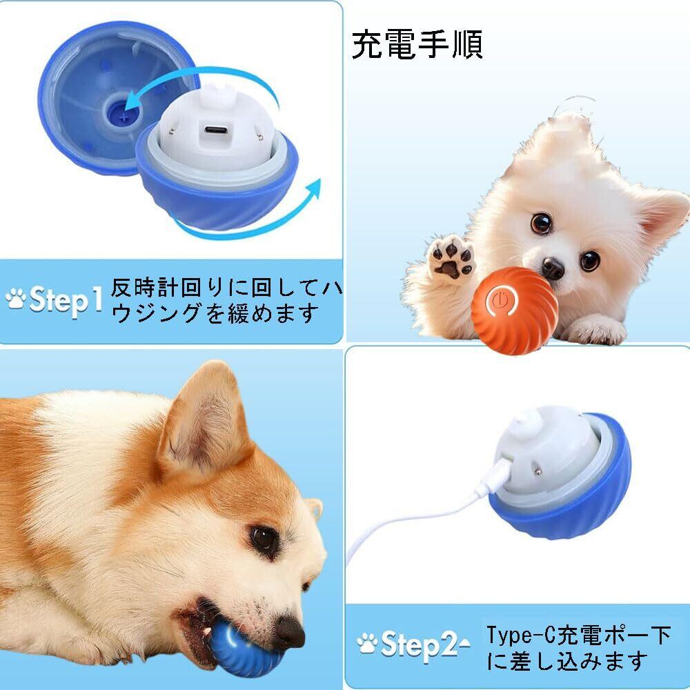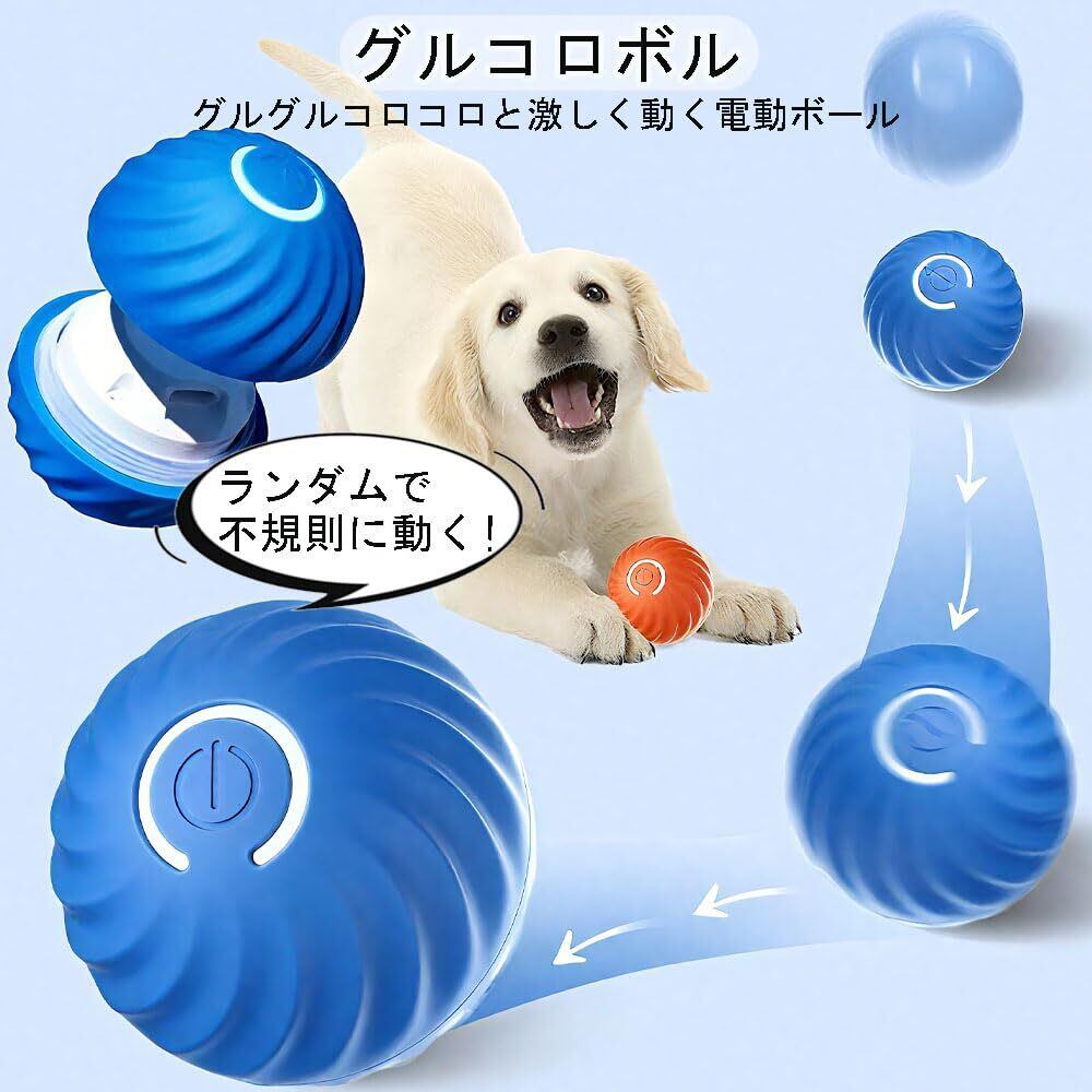 犬ボール犬おもちゃブルー電動ボール自動光の弾むボールUSB充電自動回転お留守番中小型犬の運動不足対策ストレス解消耐久性安全ペット用品一人遊び (オレンジ)