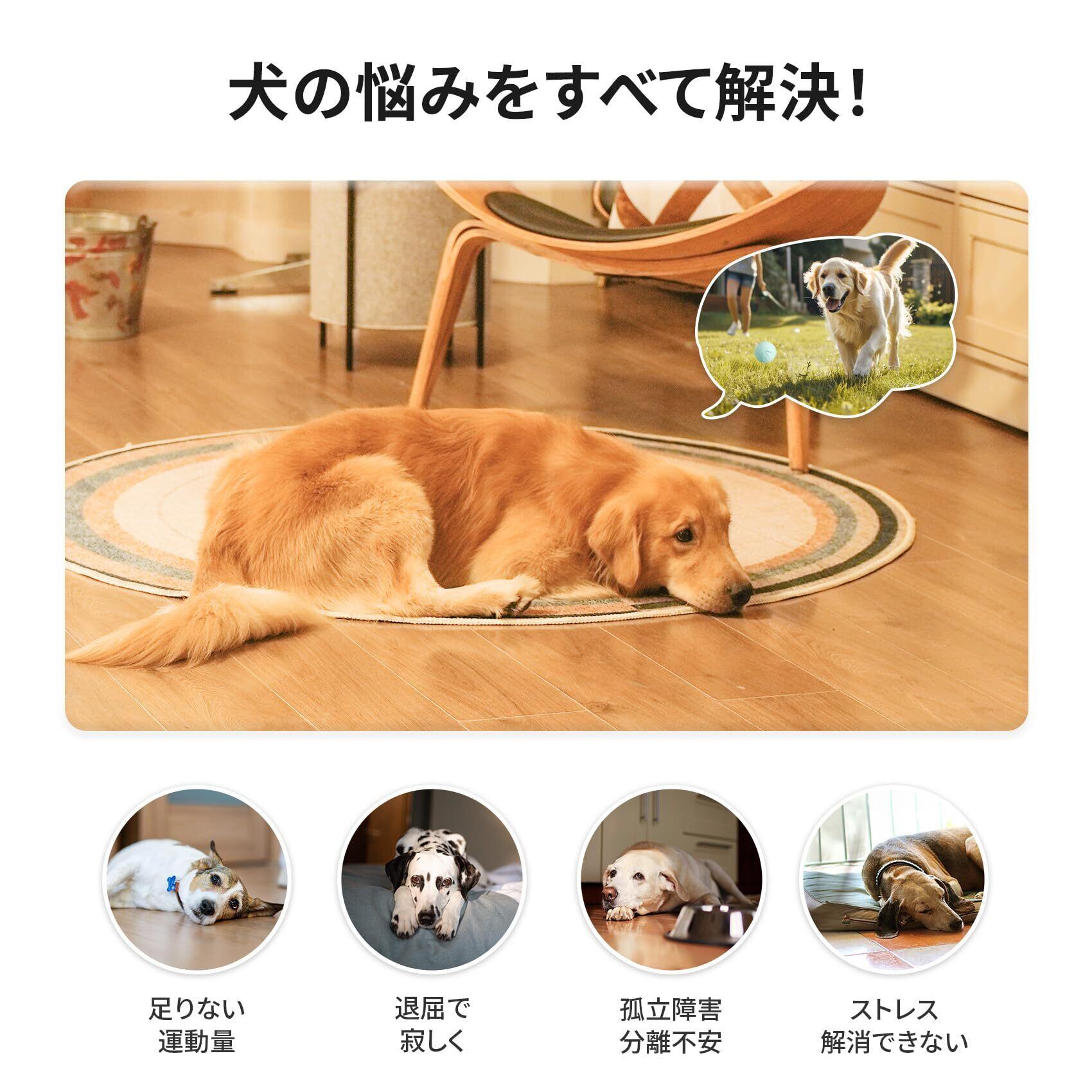 【失くさない設計・室内外で大活躍】テーブルや棚の下に入っても自動で方向転換するので、隅で動けなくなる心配なし。猛暑や真冬で散歩に行けない日でも、室内でストレス解消&運動不足をサポート。さらにキャンプやお出かけに持ち出せば、屋外でも愛犬が思いきり遊べる便利なおもちゃです。【IPX7防水】IPX7防水仕様のため、バッテリーを取り外す必要はなくボールを丸ごと水で洗えます。外で泥まみれになったときやキャンプ、雨上がりの屋外遊びでも、水でサッと洗い流すだけで清潔に。室内で飲み物やよだれが付いてしまった場合も簡単にお手入れでき、いつでも安心して遊ばせられます。