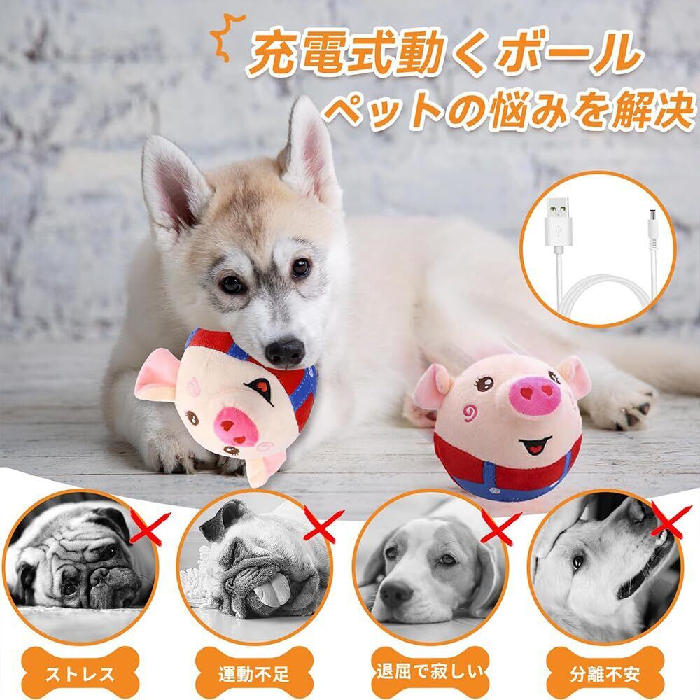 犬 電動ボール おもちゃ 動くボール ぬいぐるみ 動く 電動 自動 犬のおもちゃ 動くおもちゃ 歌うぬいぐるみ 回転ボール 柔らか 防水 無毒 お手入れ簡単 運動不足 ストレス解消 小型犬 中型犬 大型犬 ペット (赤い豚)