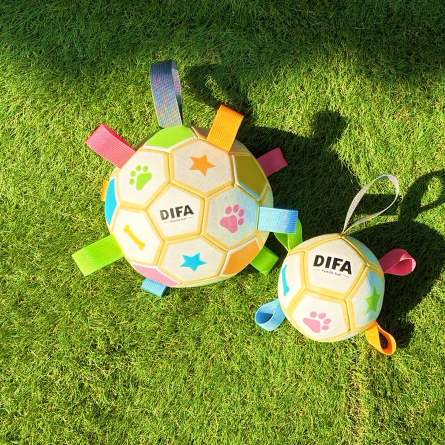 ボールにはストラップが数か所付いており、愛犬が口に咥えて運びやすいのはもちろん引っ張りっこ遊びも楽しめます。ボールトップのストラップは少し長めの設計で飼い主様が持ち運びしやすい長さです。ボールは軽量で弾力性もありアクティブに遊びたい子にぴったり。振り回して遊んだり、飼い主様とのコミュニケーショントーイとしても大活躍。水にも浮くので夏のプール遊びでもご使用いただけます。