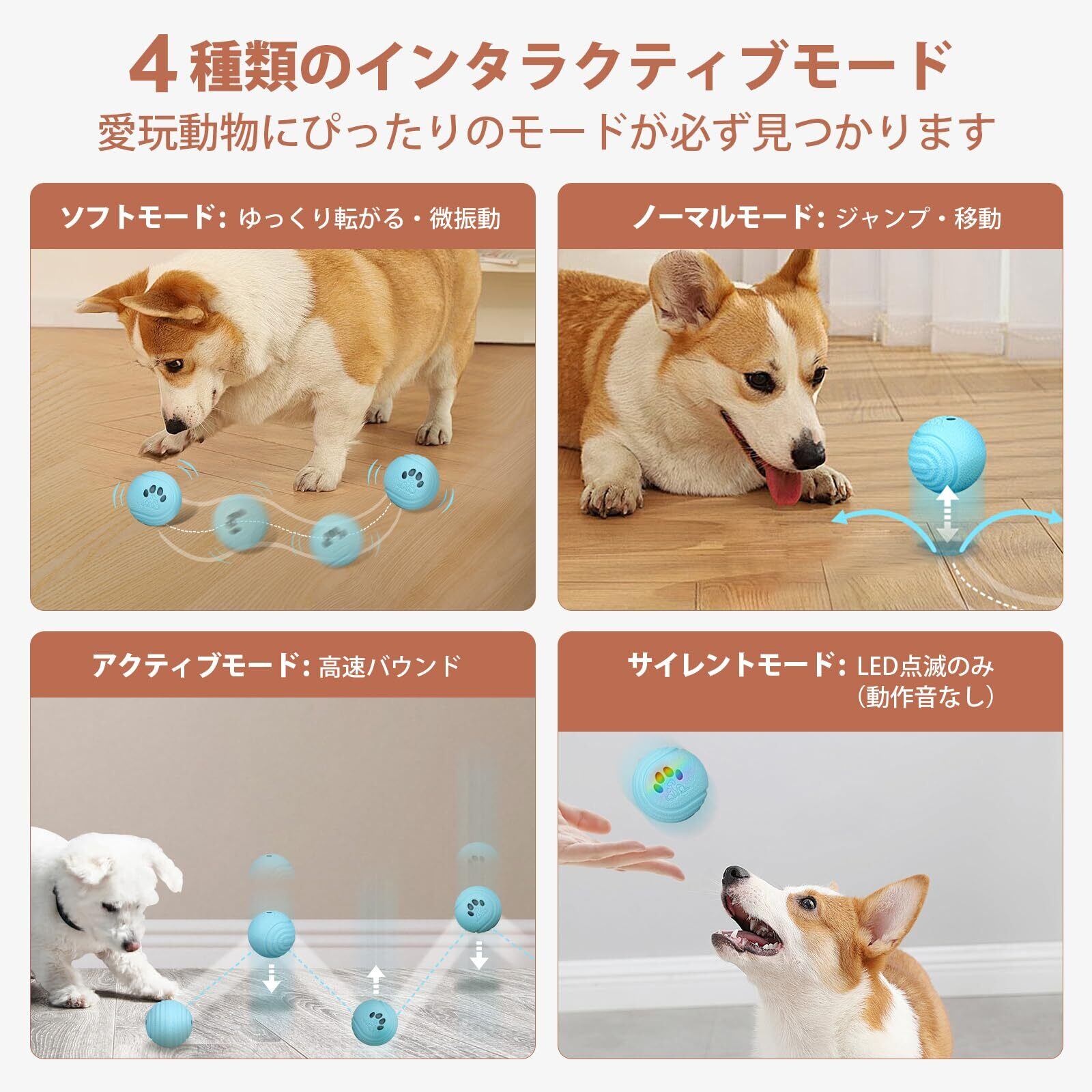 【4つのインタラクティブモード】おとなしい子から活発な子まで、性格に合わせて選べる4つのモード(やさしい/標準/アクティブ/光る)を搭載。
