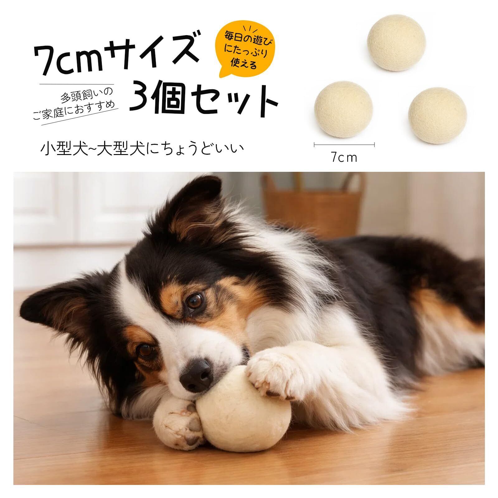 【7cmサイズ・3個セットで長く使える】 直径約7cmのボールは、小型犬から中型犬まで使いやすいバランスの良いサイズ感。3個セットなので、洗い替えや遊びのローテーションにも便利で、毎日の遊びにしっかり使えるコスパの良いセットです。