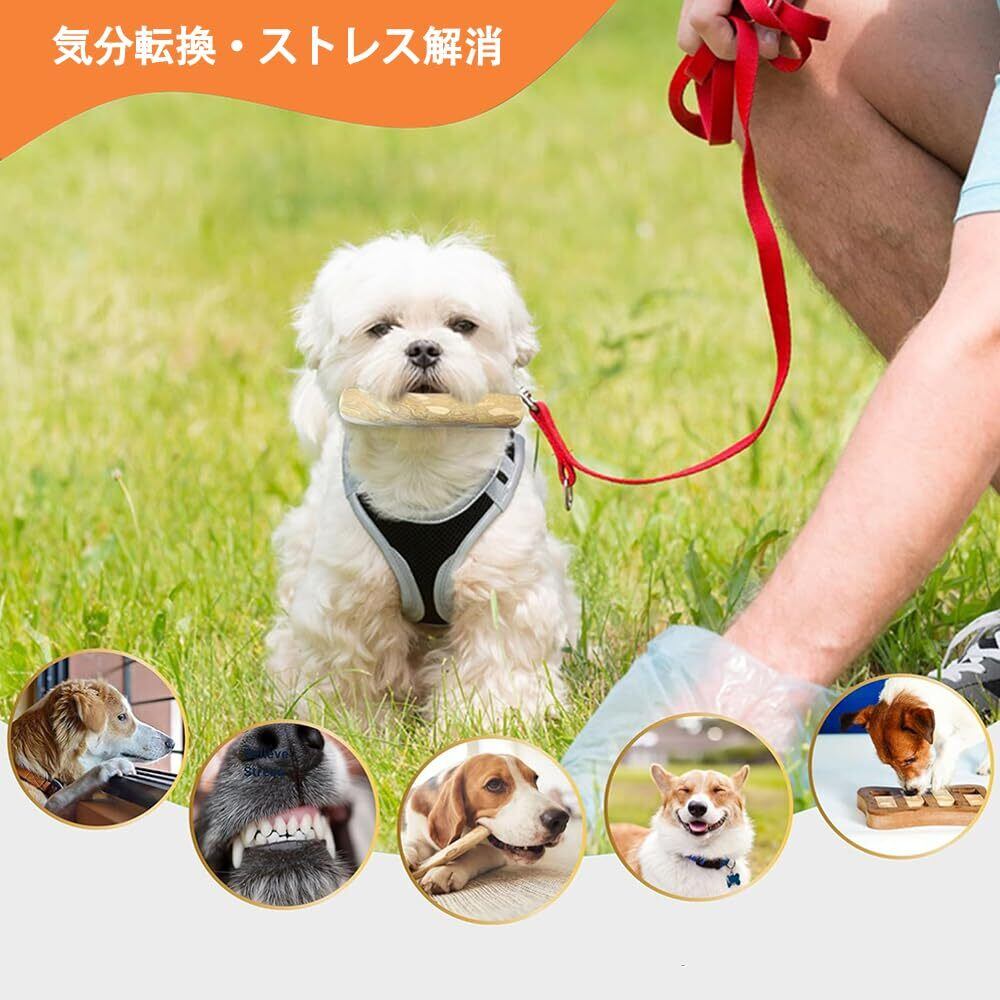 【ストレス解消】繊維質の硬い木を噛むことで、犬の本能的な「噛みたい」欲求を満たし、日常のストレスや退屈を和らげます。ひとり遊びの時間でも、精神的な安定と幸福感の向上に貢献します。