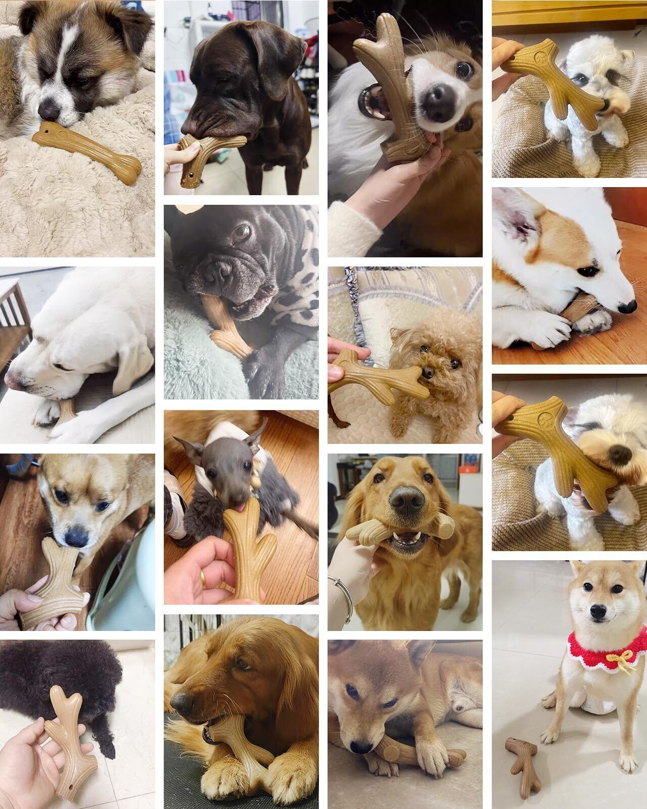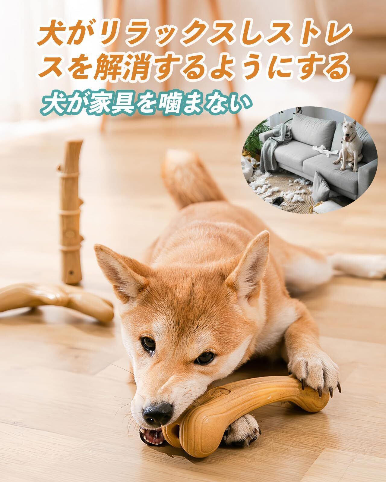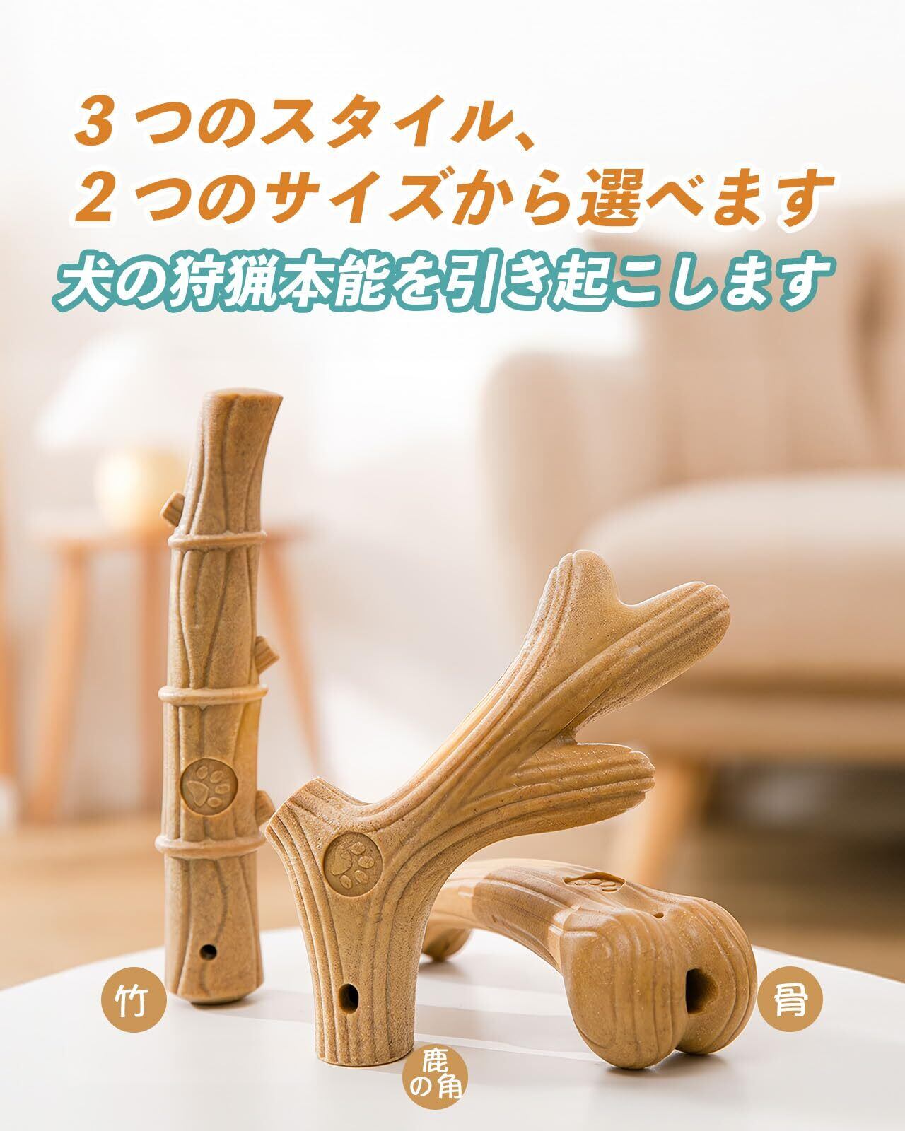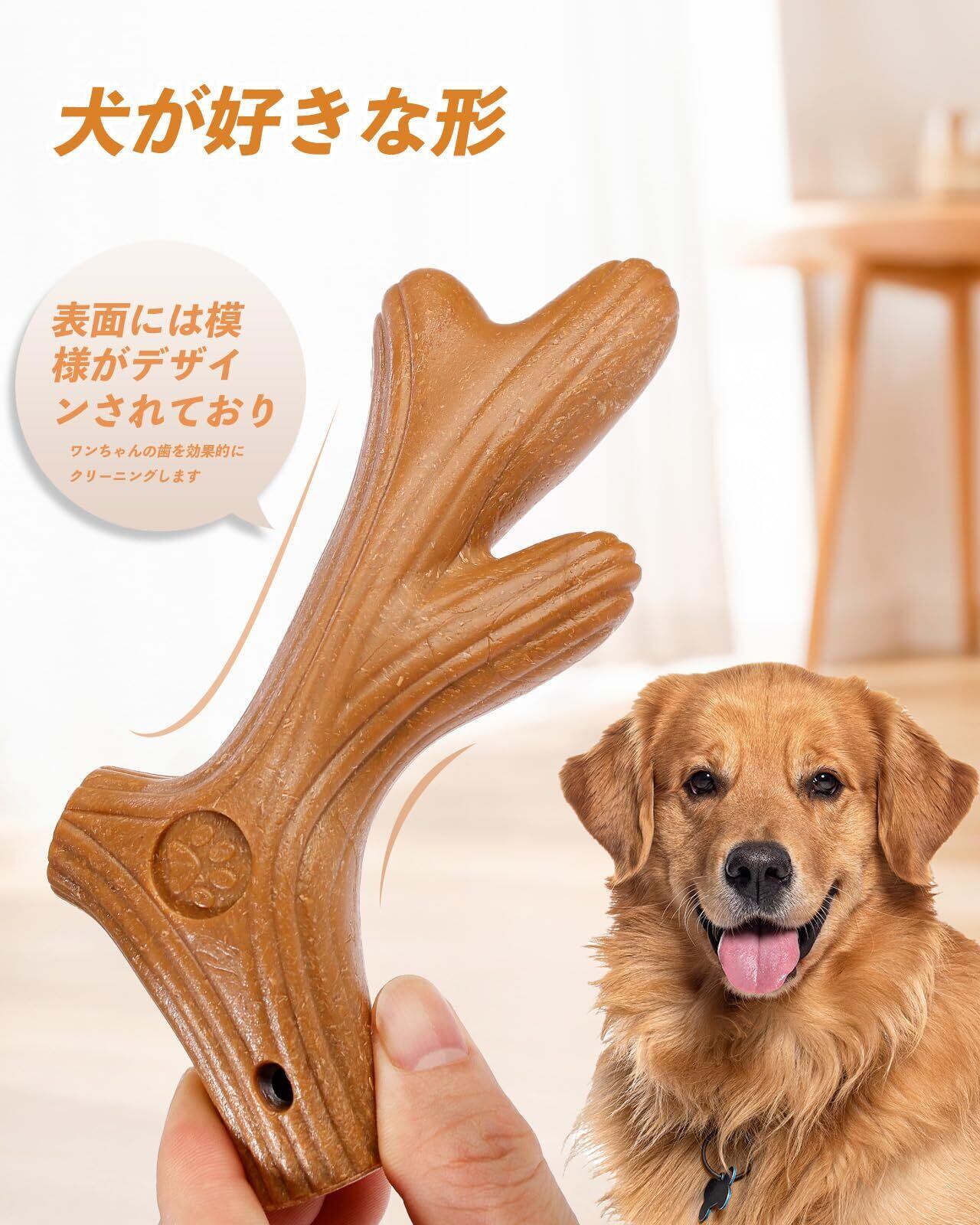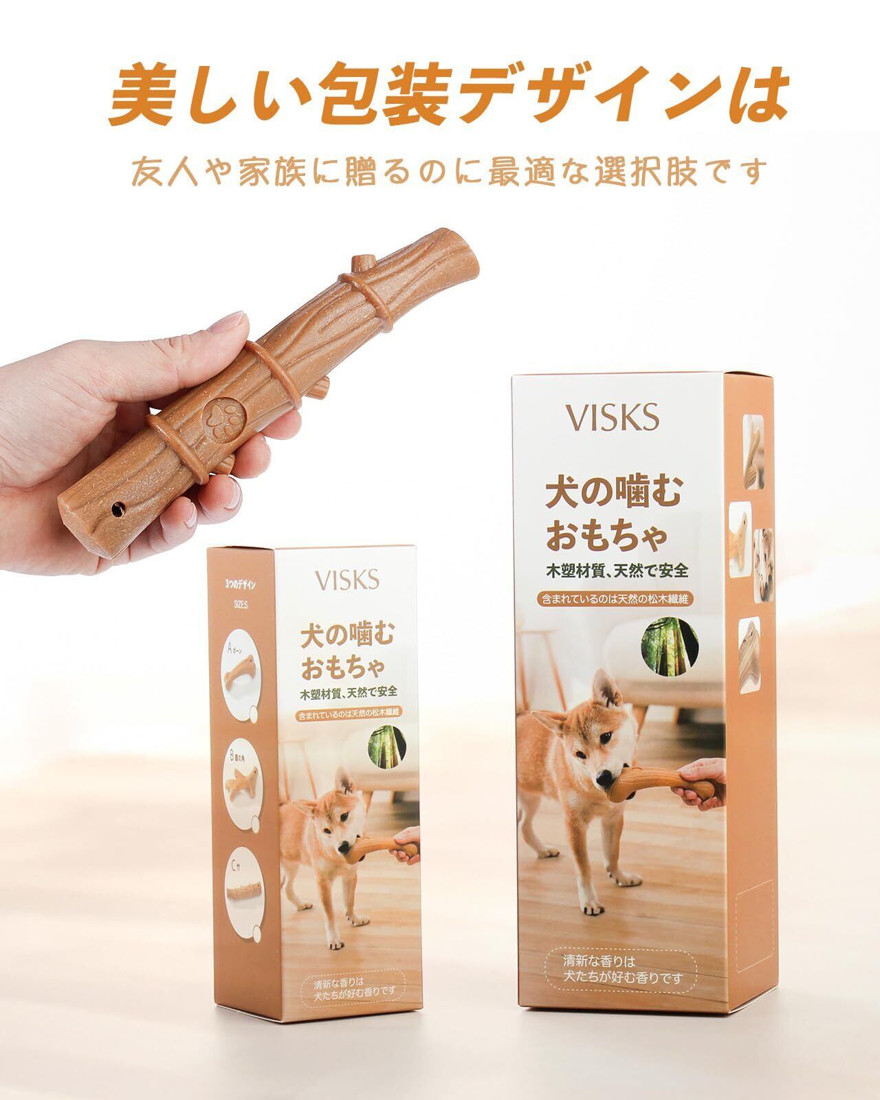 VISKS 犬のおもちゃ 松繊維製で耐久性 鹿の角型犬用噛みおもちゃ、訓練に適した知育玩具、大小犬用2サイズ選択可能