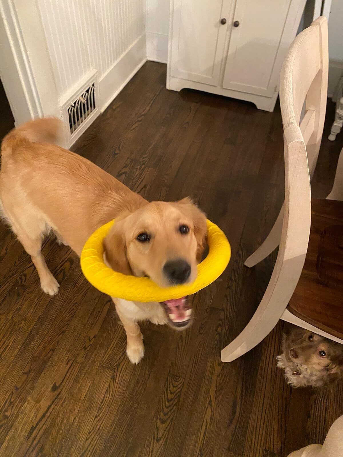 【不安を和らげる】 犬用リング噛むおもちゃは、犬の首に掛けて、投げたり、綱引きしたりなど、屋外で犬と交流することができます。犬の不安を軽減し、犬の破壊的な行動を減らすことができます。
