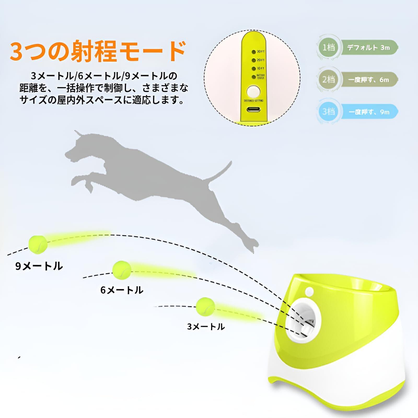 [GIIPET]犬 ボールランチャー おもちゃ 充電式 自動投げ投球機 ボール3個付き 3/6/9m 3種類の発射距離 犬用 ロボピッチャ 2~3時間の長いバッテリー寿命 自動ボールキャッチ 小型犬~中型犬用 知育玩具 ストレス解消 運動不足の解消 室内で遊べる