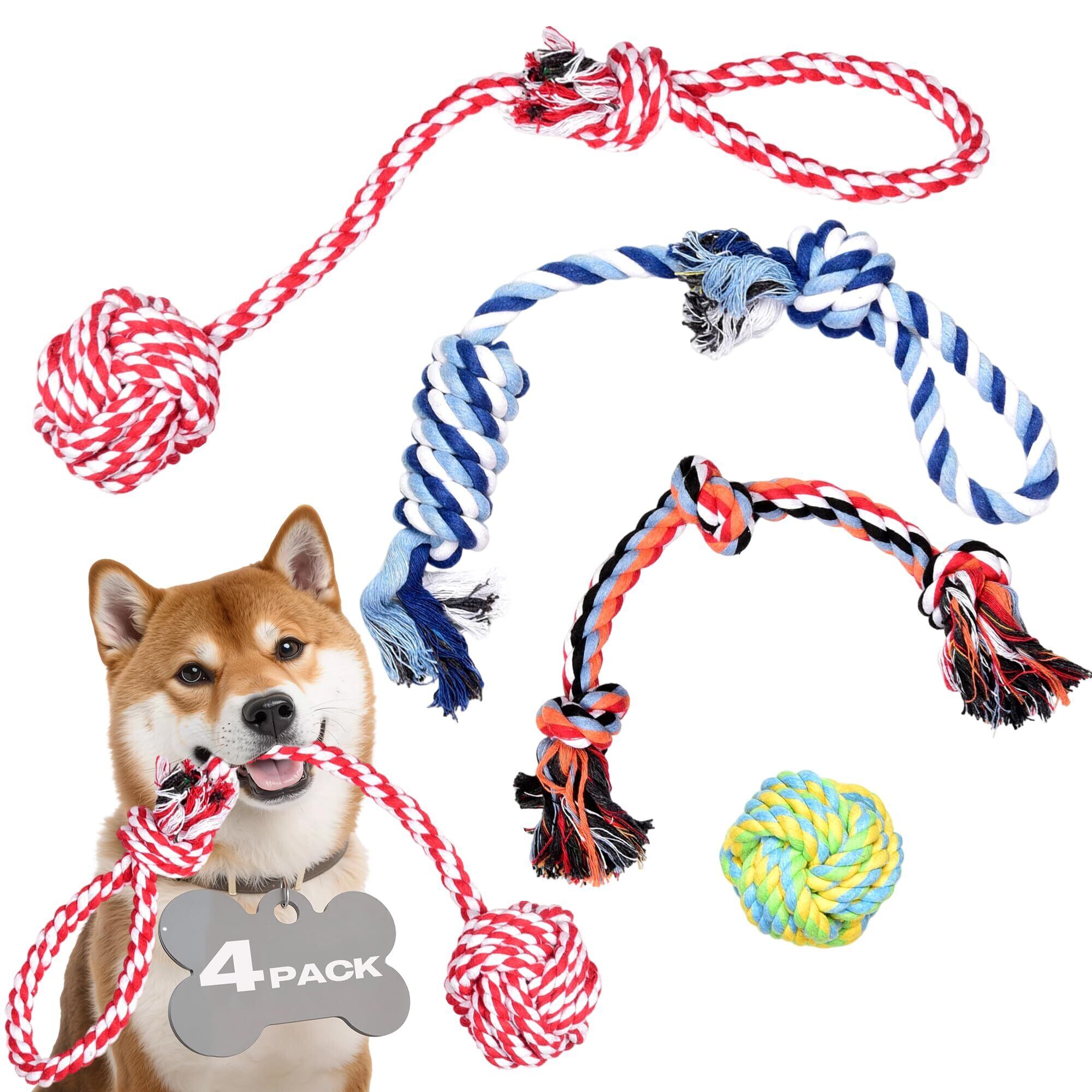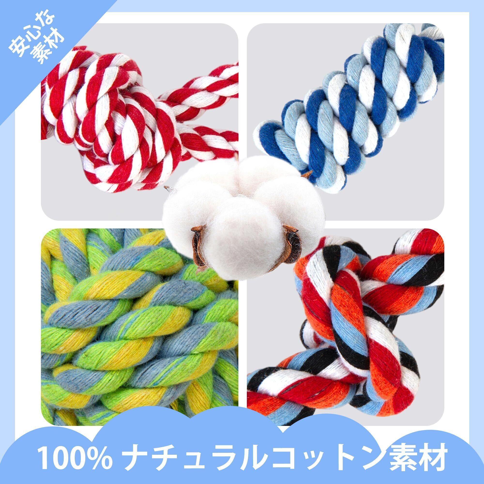 Fida 子犬おもちゃロープ 4個セット 天然コットン100%犬の噛むおもちゃ ペット犬用玩具 頑丈 壊れない 歯磨き 清潔 運動不足ストレス解消 丈夫 耐久性 小/中型犬に適用, カラフル