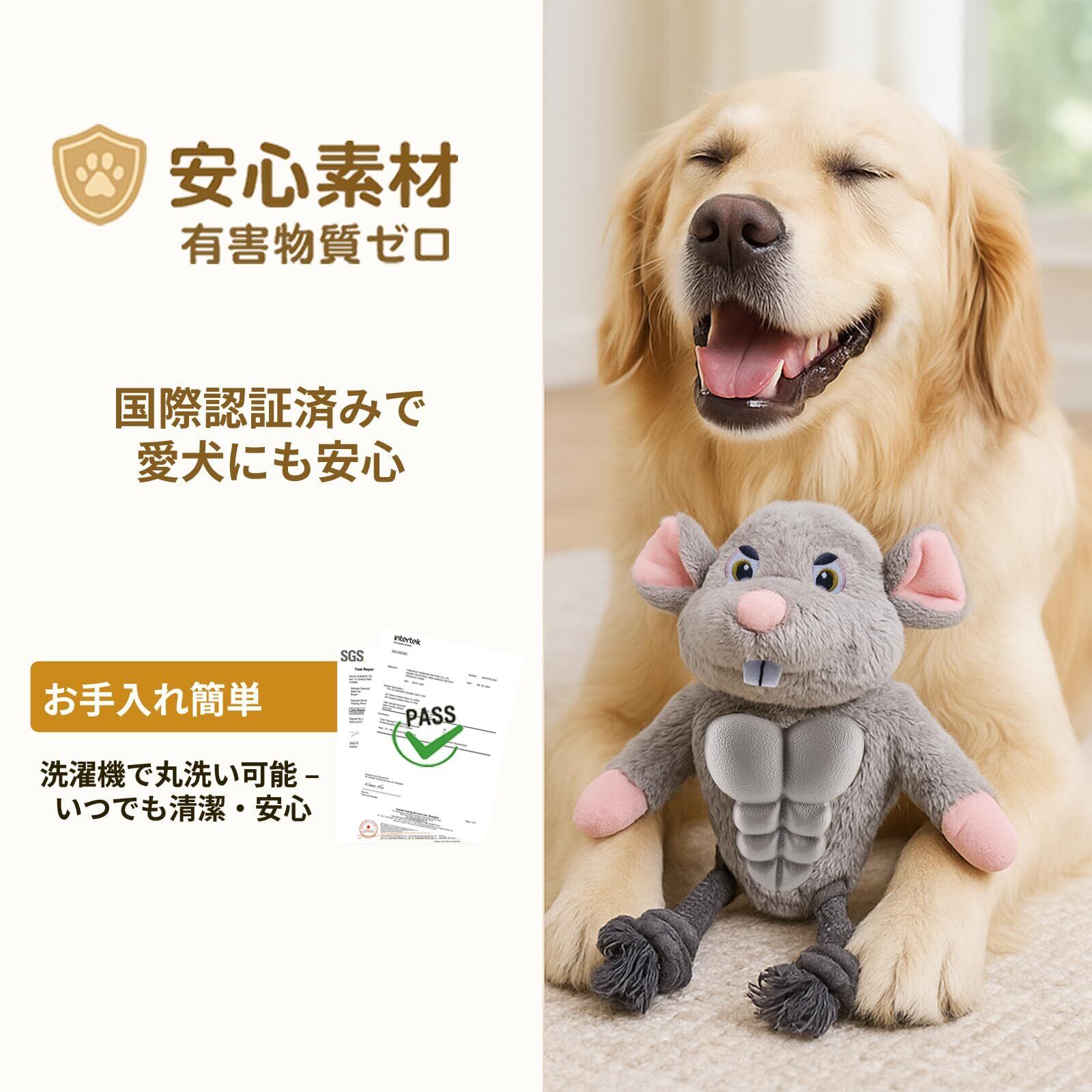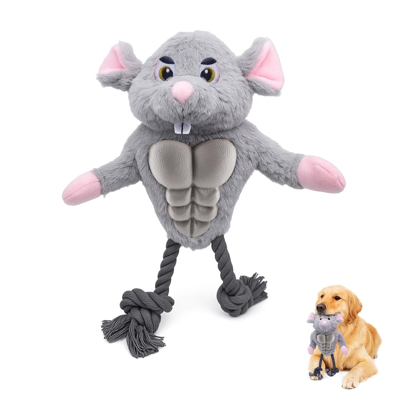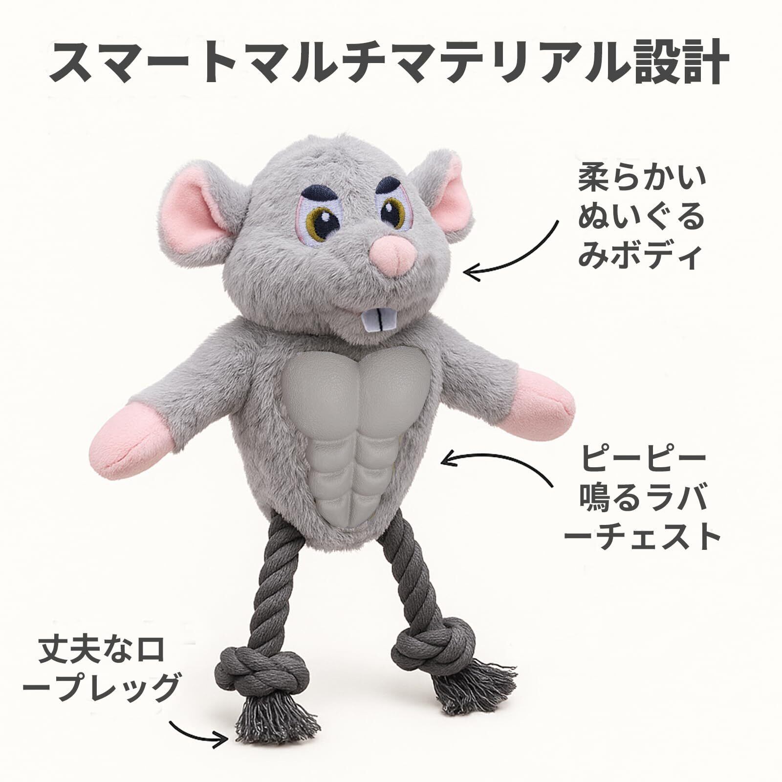 Calibonbon 犬 おもちゃ 超耐久 マウス ぬいぐるみ 中型大型犬 キーク音 ゴム腹 ロープ足 歯磨き