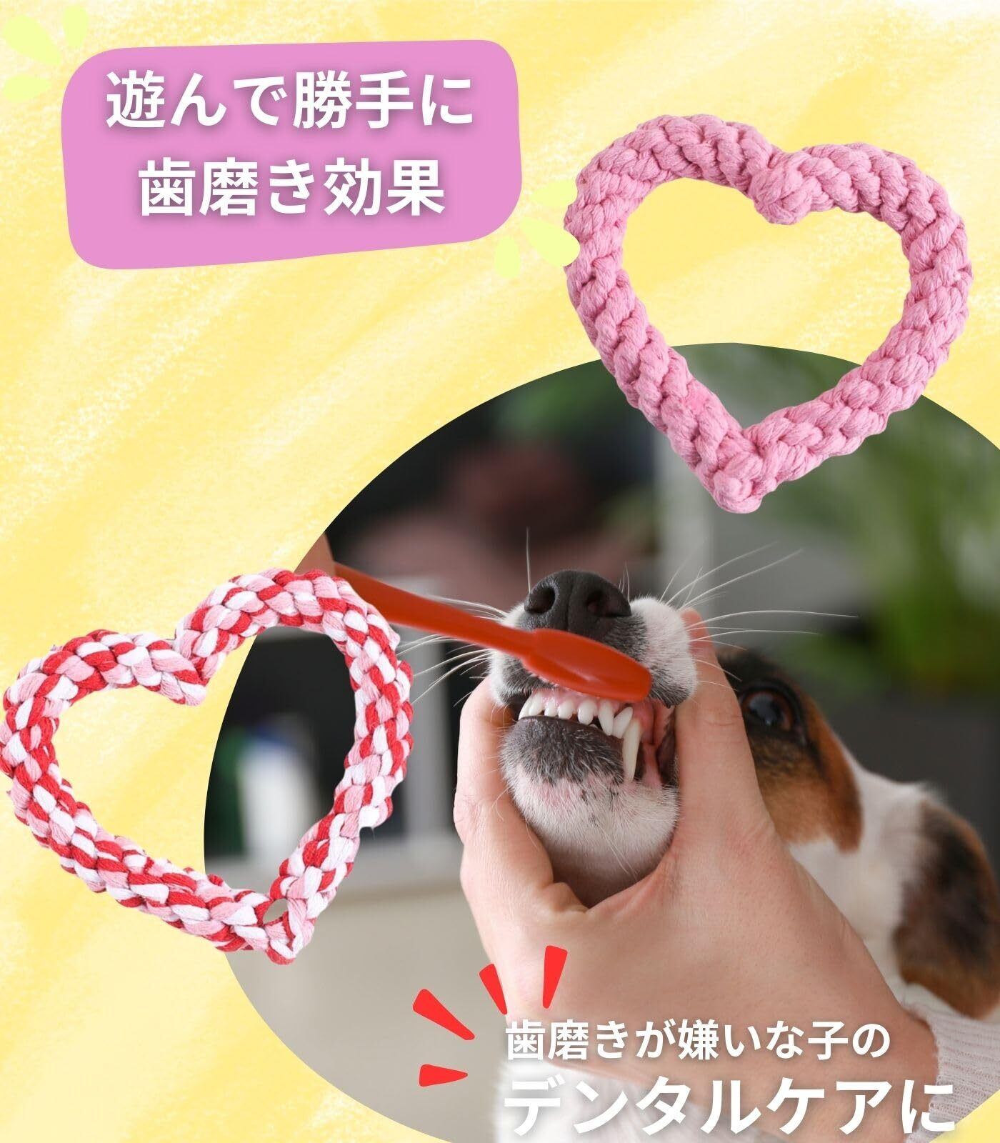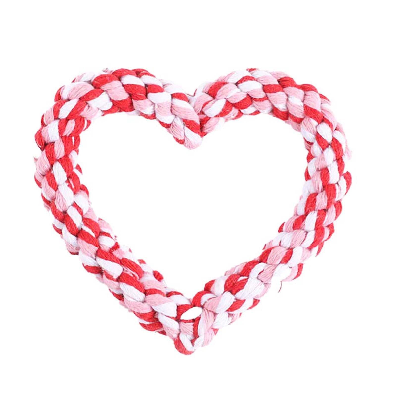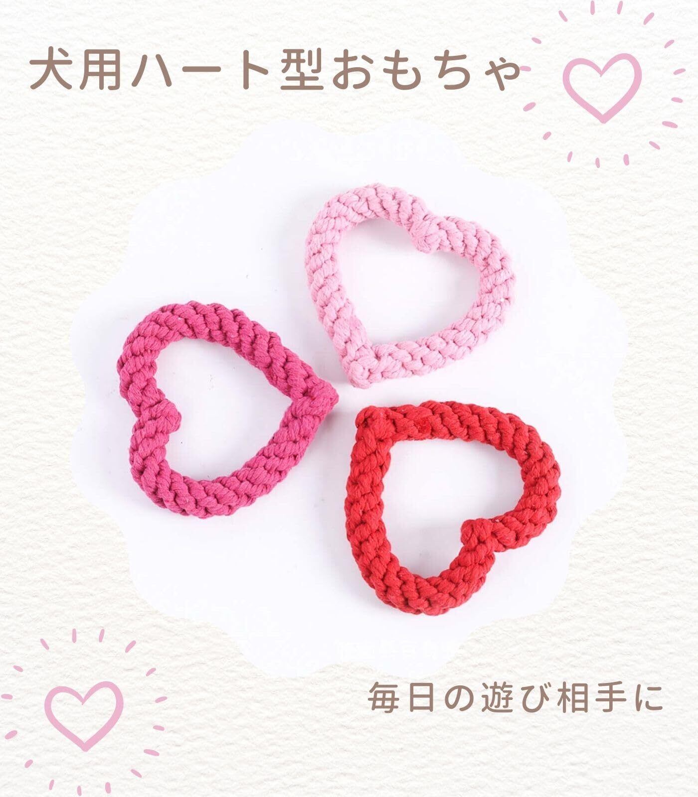 犬の喜びを形にした、ロープ製ハート型おもちゃ!噛んで、引っ張って、ストレス解消!デンタルケアも兼ね備えた、愛犬のための理想的なおもちゃです。