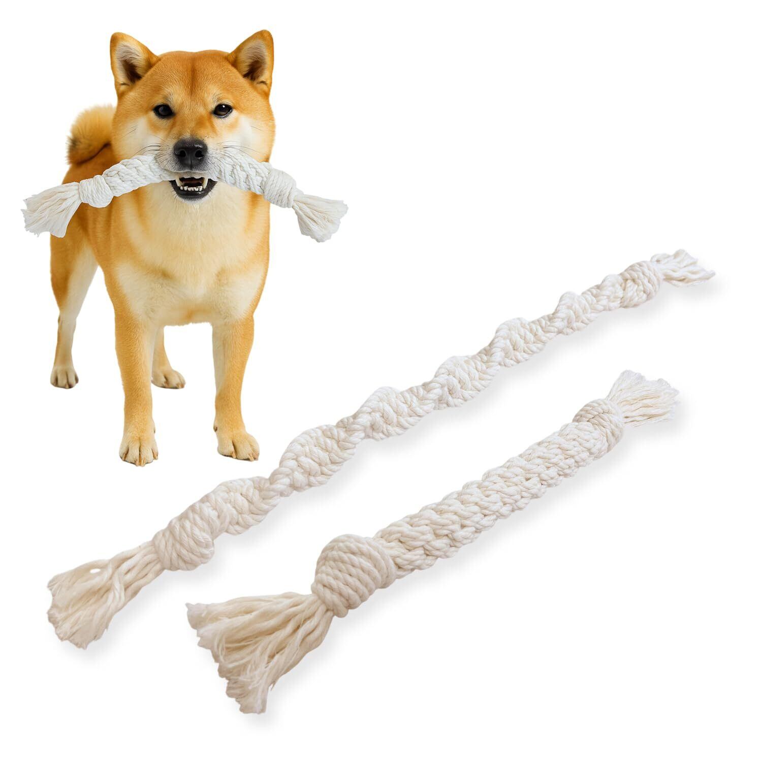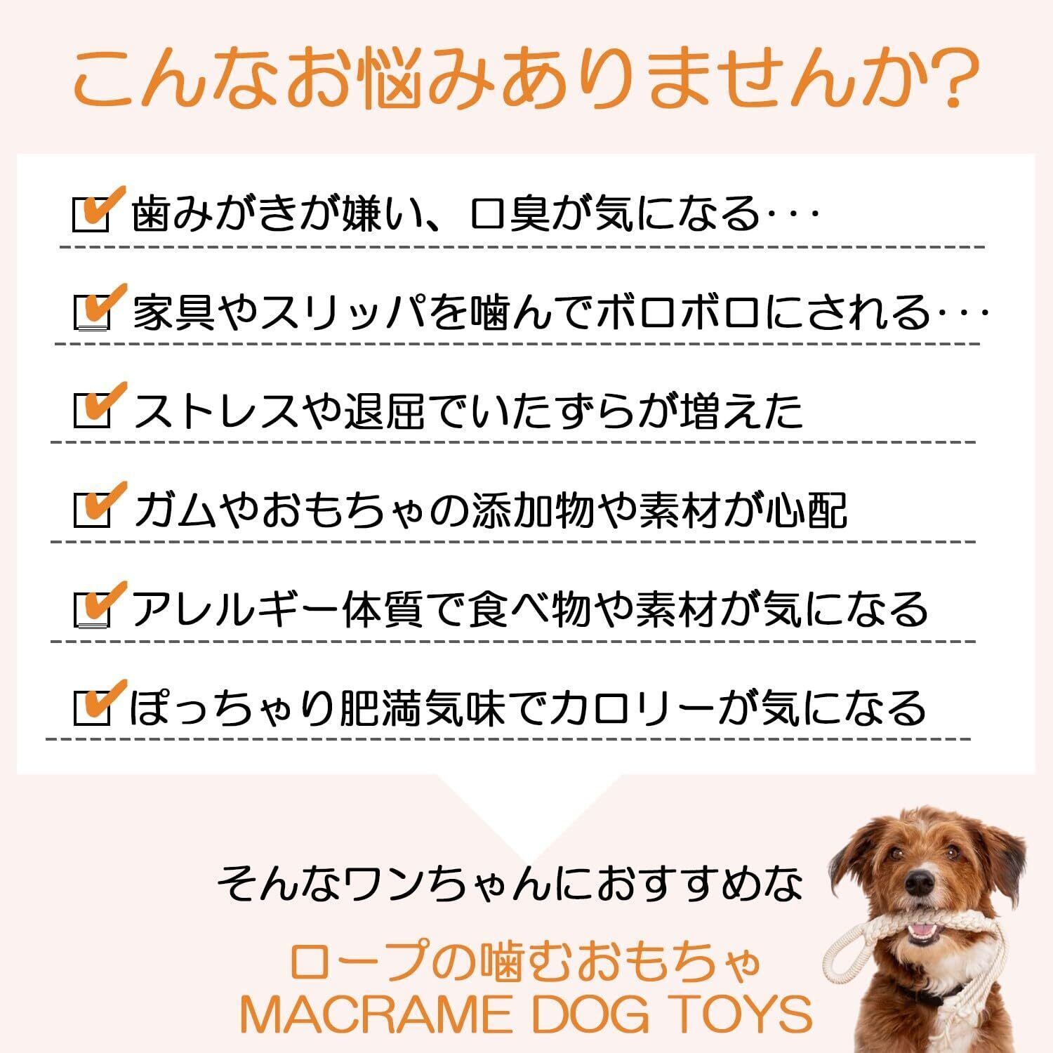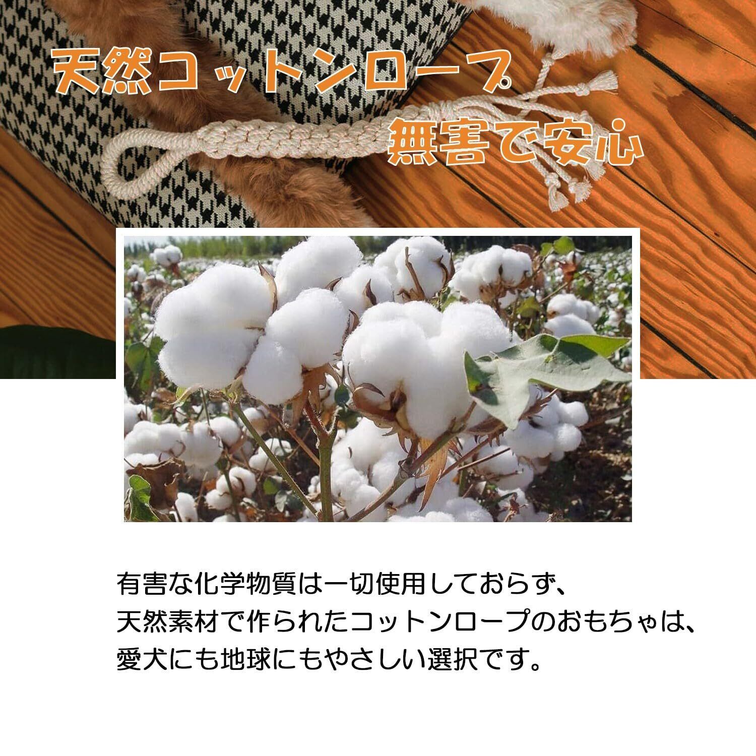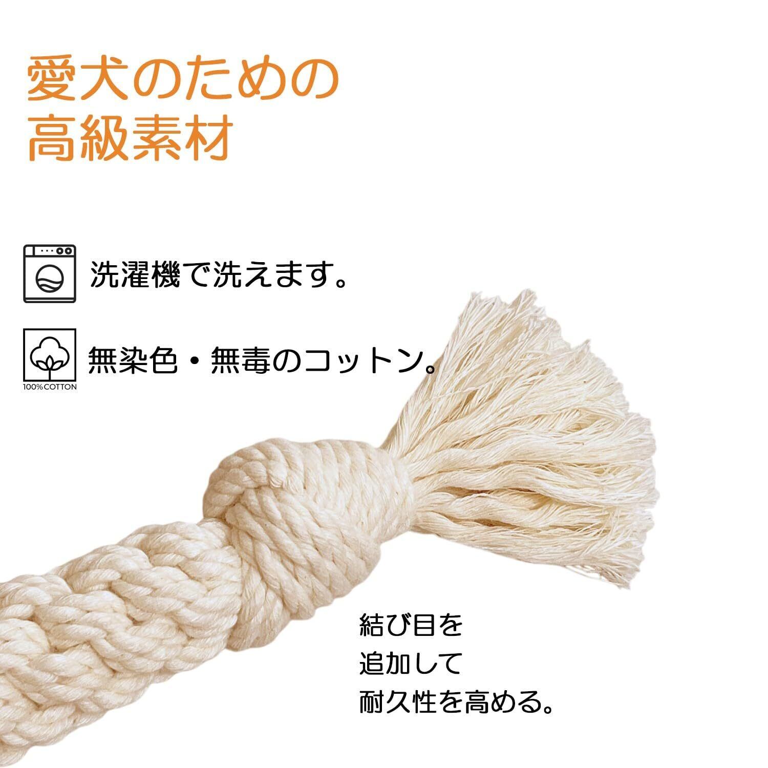【天然コットンロープ - 無害で安心】有害な化学物質は一切使用しておらず、天然素材で作られたコットンロープのおもちゃは、愛犬にも地球にもやさしい選択です。