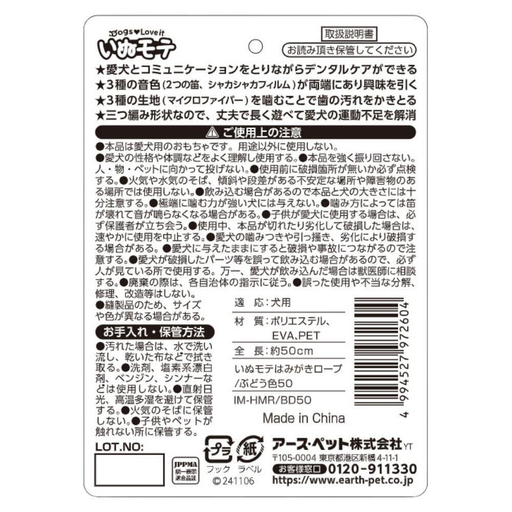 アース・ペット いぬモテ はみがきロープ/ぶどう色50 犬おもちゃ 犬玩具