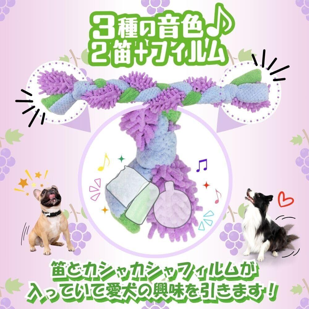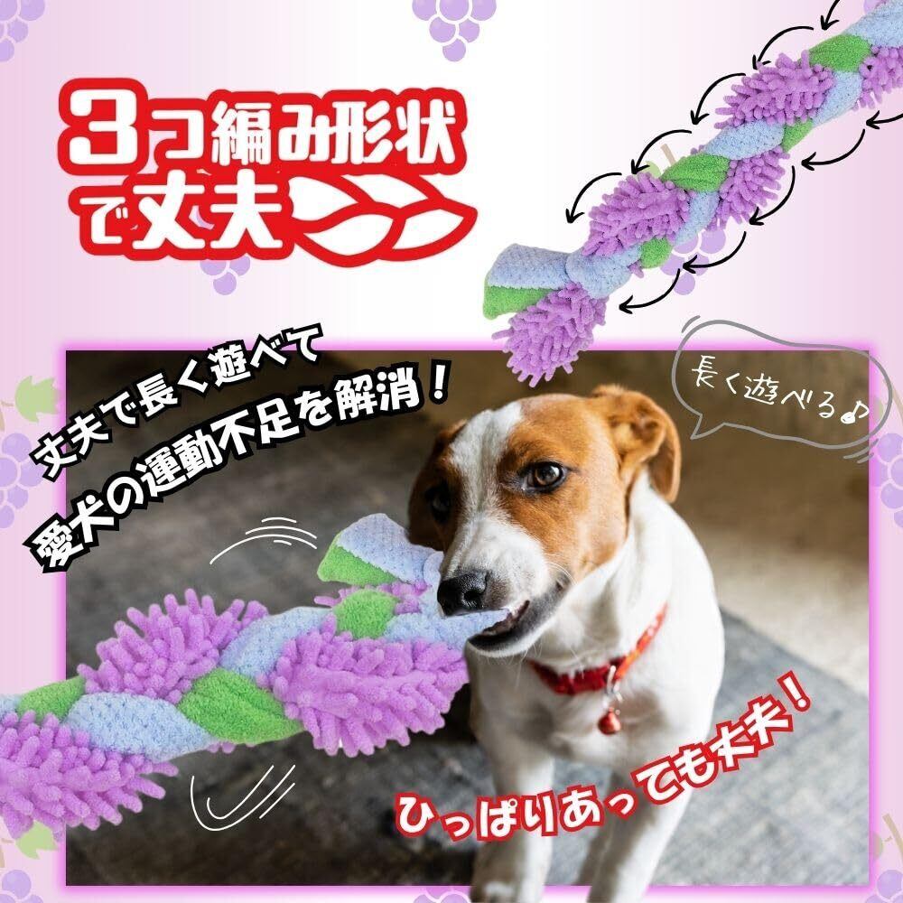 一緒にひっぱりっこ 遊んでデンタルケア ●愛犬とコミュニュケーションをとりながらデンタルケアができる●3種の音色(2つの笛、シャカシャカフィルム)が両端にあり興味を引く●3種の生地(マイクロファイバー)を噛むことで歯の汚れをかきとる●三つ編み形状なので、丈夫で長く遊べて愛犬の運動不足を解消