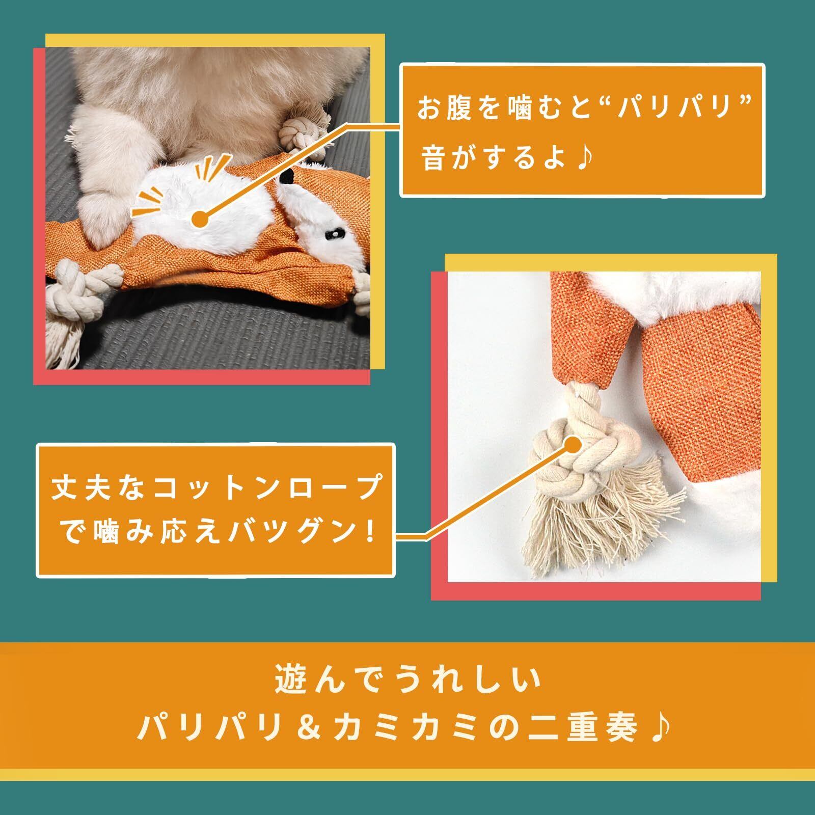 WanWeek 犬 用 ぬいぐるみ 音が鳴る ロープ付き 噛む おもちゃ ピーピー カシャカシャ カミカミ 2種類の音 3種類の遊び方 夢中 歯磨き ストレス 解消 安全素材 中綿なし 頑丈 面白い かわいい (キツネ)