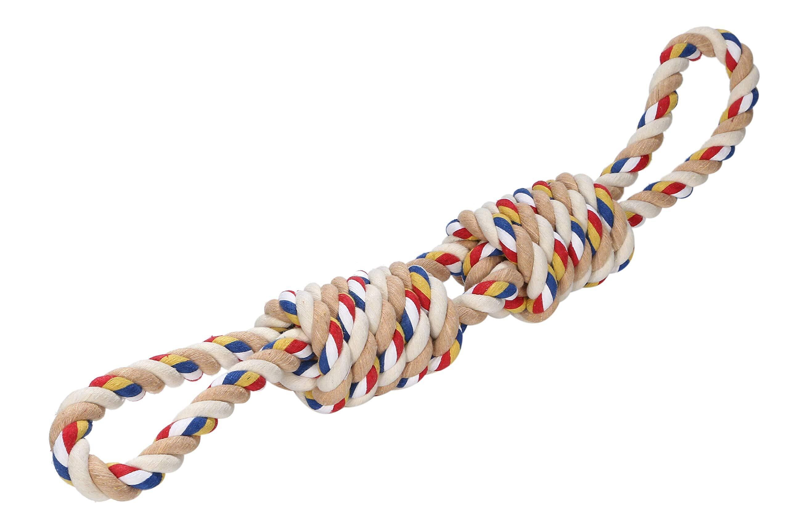 【あなたもペットも満足な仕様】 ・濃淡複数の色の組みわせで、犬の視覚でも興味を引きやすい。 ・両端がループになっており、引っ張りやすく遊びやすい。 ・天然コットン100%で水洗い可。