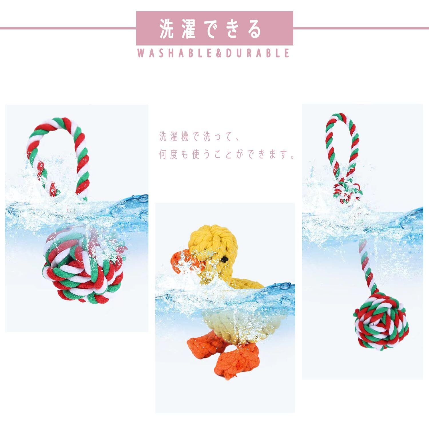 【耐久性と安全性】:綿密に編まれた素材は犬の歯に優しく、おもちゃとして理想的です。100%綿製の玩具はペットにとって安全で、引き裂いたり、噛んだり、遊んだりするのに適しています。このほぼ破損しないおもちゃは、愛犬に長時間の楽しみを提供します。機械洗濯が可能で、何度も再利用できます。