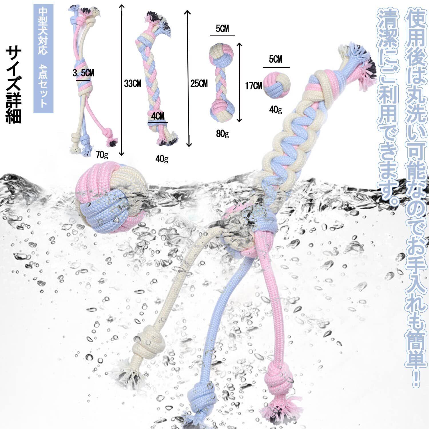 Yuriya 4点セット 犬 ロープおもちゃ マカロンカラー 綿 ボール かみかみ 歯磨き デンタル 歯のケア 運動不足 ストレス発散 むずむず解消 耐久 洗える 中型犬 噛むおもちゃ ロープトイ