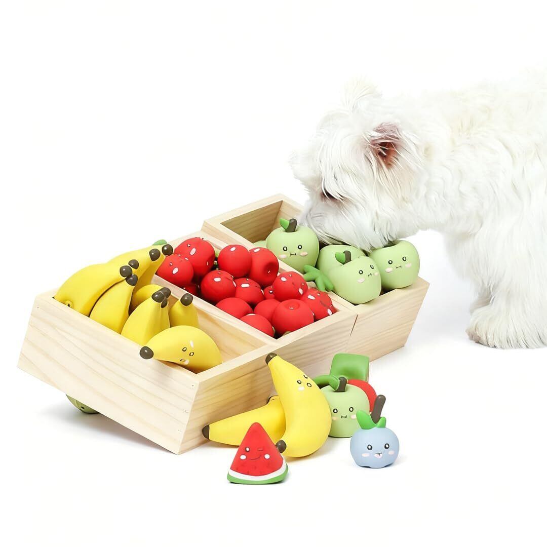 【リアルフルーツデザインで好奇心を刺激】 バナナ・リンゴ・チェリー・スイカの 4 種類フルーツ造型を再現,色彩鮮やかで犬の注意を引きつけます。サイズが握りやすく,小~中型犬が楽に噛んだり持ち運んだりでき,遊びの楽しみを倍増させます。