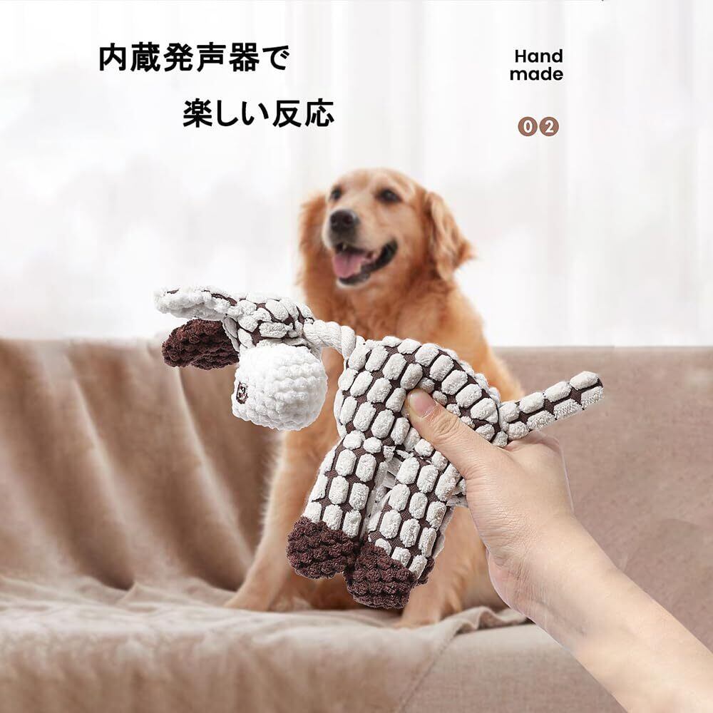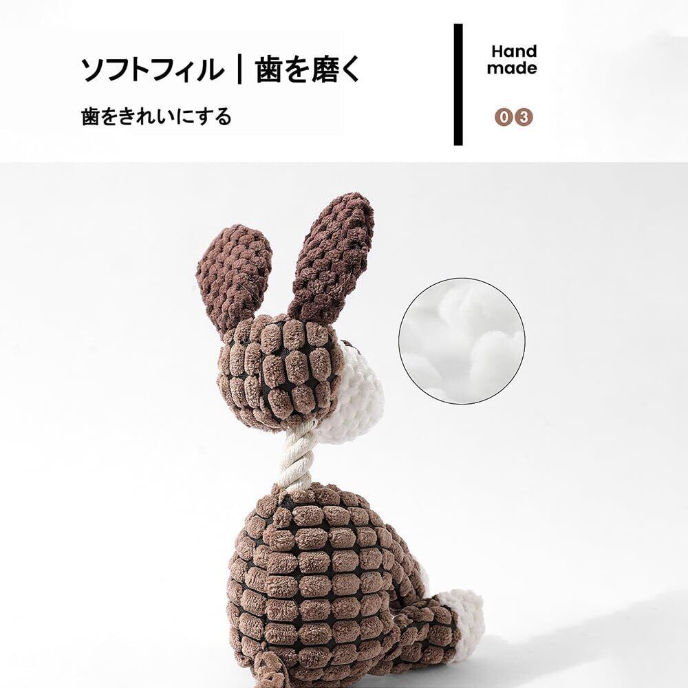 超耐咬設計 & ポリエステル綿繊維で歯に優しく! 特殊強化縫製+高密度ポリエステル綿を使用し、破壊王な犬でも簡単に破損しない耐久性。表面はトウモロコシ由来の柔らかいパイル生地で、歯茎を傷つけず噛み心地良好。デンタルケア効果で口腔健康をサポート。