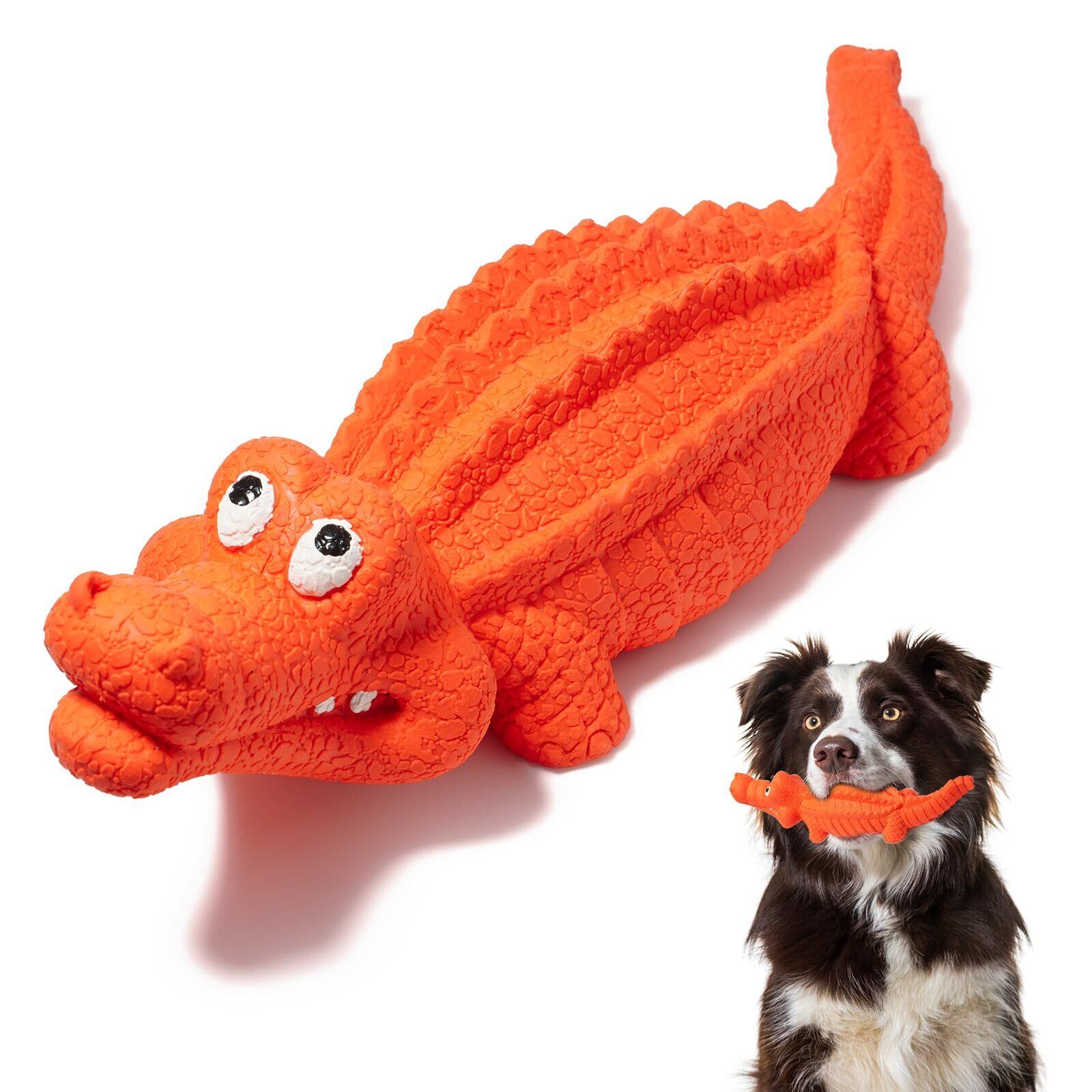 犬 おもちゃ 音が出る 噛んでも壊れない クロコダイル 頑丈な天然ゴム 小中型犬・大型犬 歯清潔 知育玩具 口臭予防 ストレス解消 (レッドオレンジ)