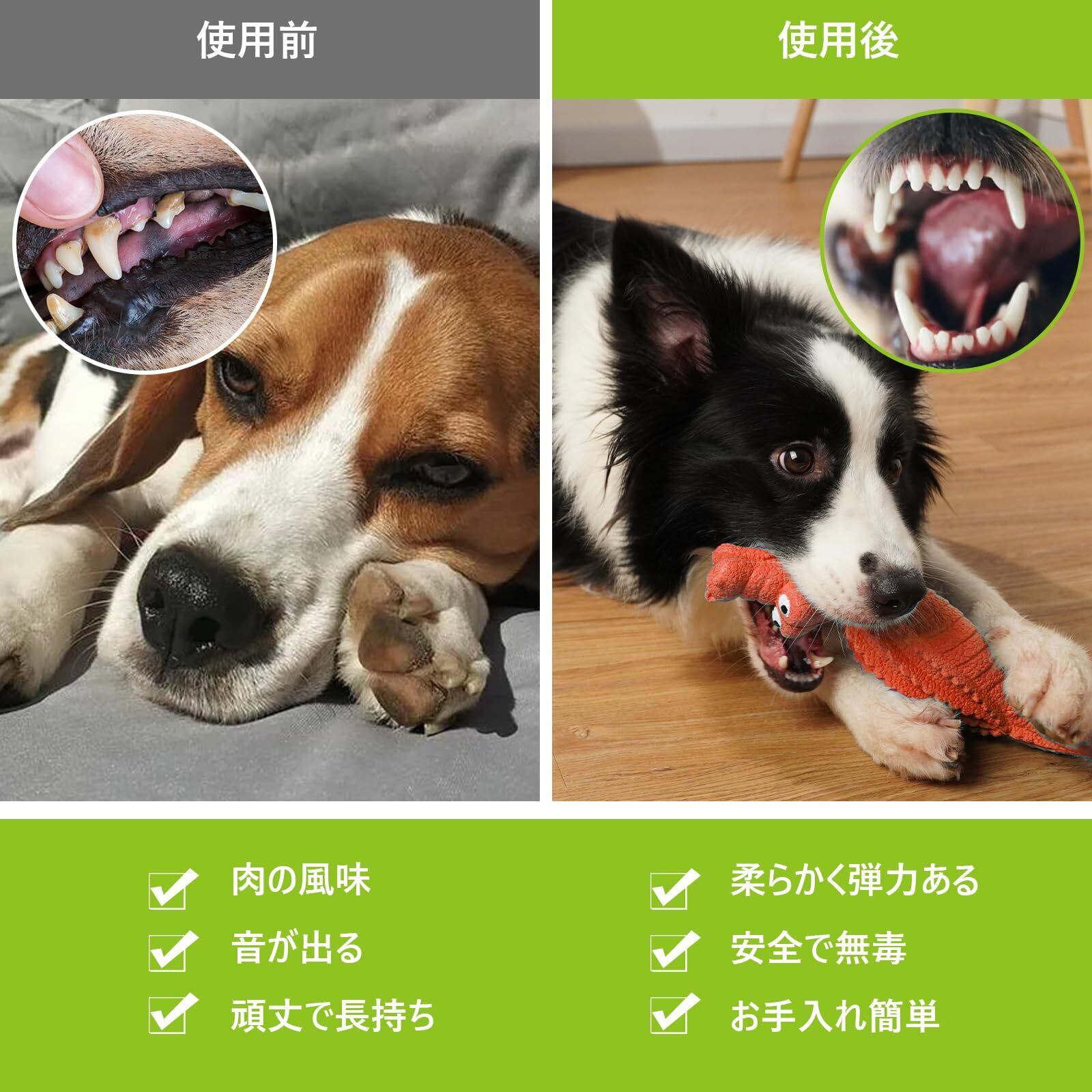 【安全な素材】食品級TPRゴム素材を採用しており、丈夫で安全無毒です。耐久性と耐摩耗性にも優れ、ペットの噛む本能を満たすことができ、犬の長時間のかじりや遊びにも耐えられる。また、軽い弾力性があるため、犬の歯や歯肉に損傷を与えにくく、より快適に歯を磨くことができます。