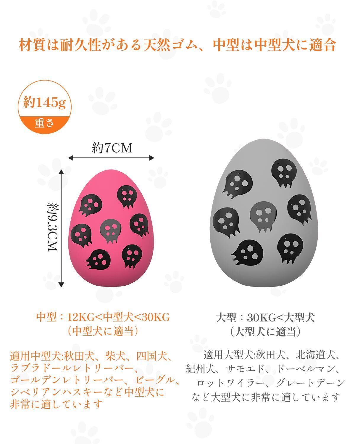 【弾むたまご形で愛犬の追いかけ遊びを促進します】安全で高品質な天然ゴム製のたまご型ボールは、予測不能な動きで弾み、愛犬の本能的な追いかけ遊びを誘います。優れた弾力性が動きをより面白くし、エネルギー豊富なワンちゃんでも満足できる興奮と楽しさを提供します。