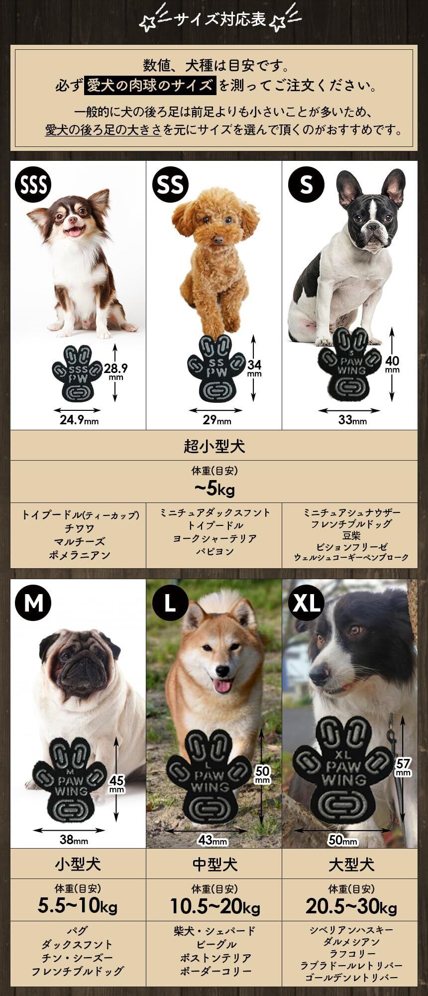 もともとは、人が砂浜などを歩く際の足裏保護用として作られたものでしたが、より滑りにくさを重視して、ペット用に開発された製品がこのPAW WING(パウウイング)です。シールタイプですので、足裏にペタッと貼るだけでOKです。シールのストレッチ性(伸縮性)も高いので、きれいに肉球を覆うことができます。 デリケートな部分に触れる物ですので、接着剤は刺激の少ないスキンフレンドリー接着剤を使用しています。剥離紙には当社独自のスリットが入っているので、絆創膏のように剥がしやすく使いやすい!シリコン製の滑り止めで、しっかりとフローリングをつかみ、まるで土の上を歩いているように歩けます。装着する前は、滑って転倒ばかりしていたのに、まるで羽が生えたかのようにスムーズに歩けます。また、柔らかい肉球をしっかり覆って保護できるように、ストレッチ性の高い繊維を使用して作られています。
