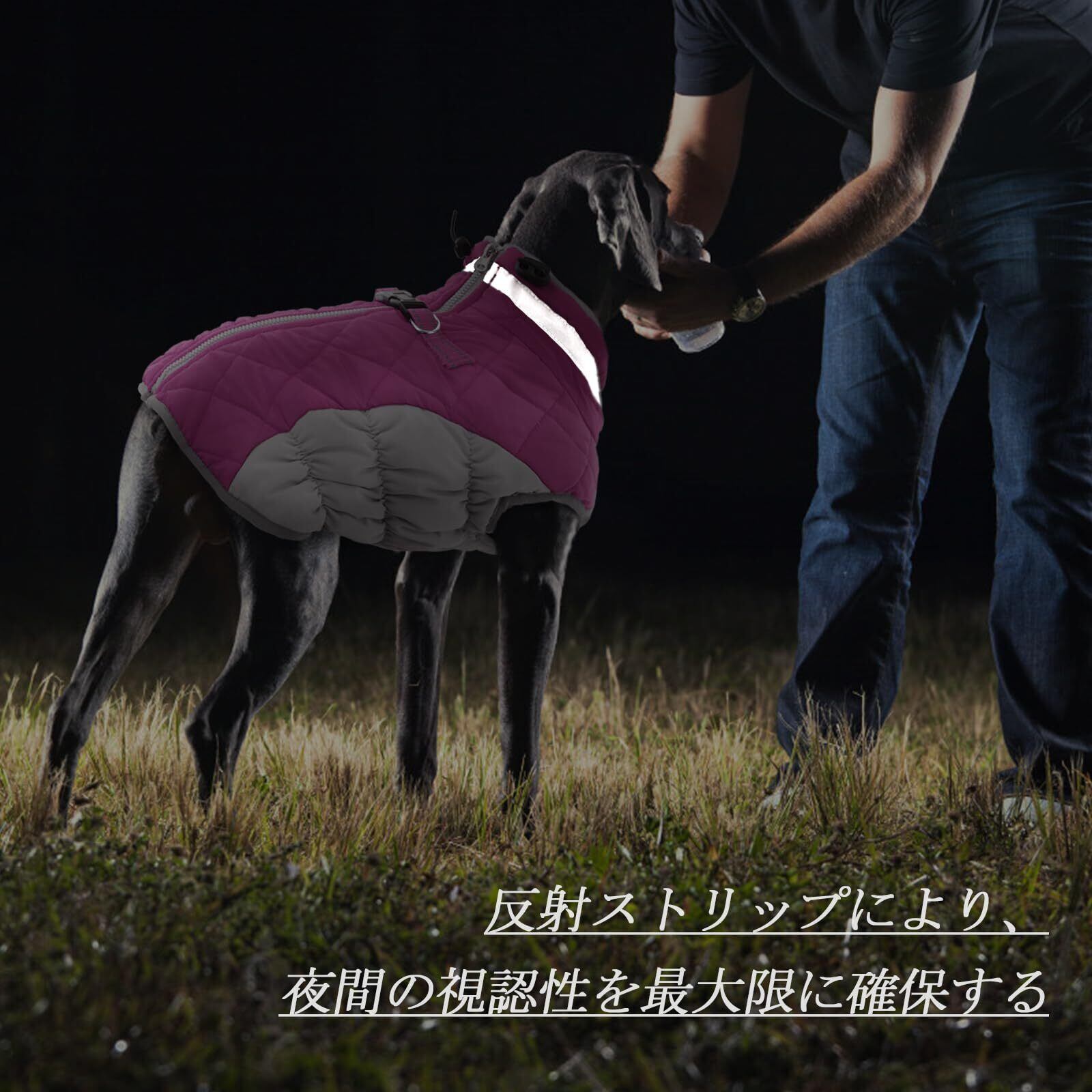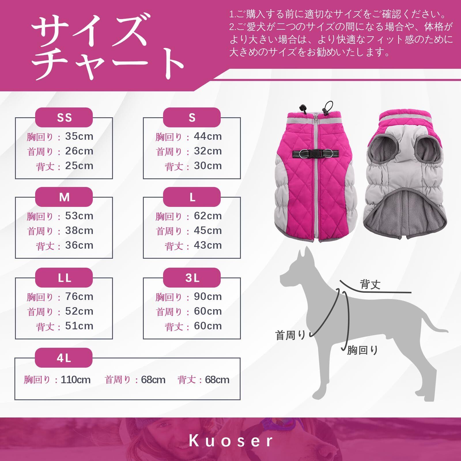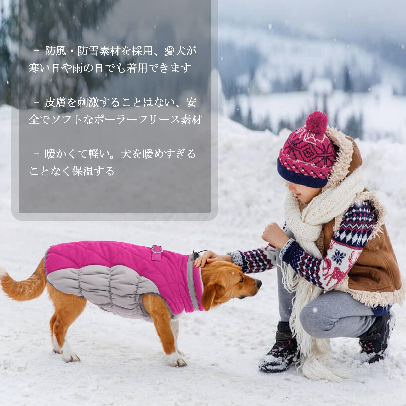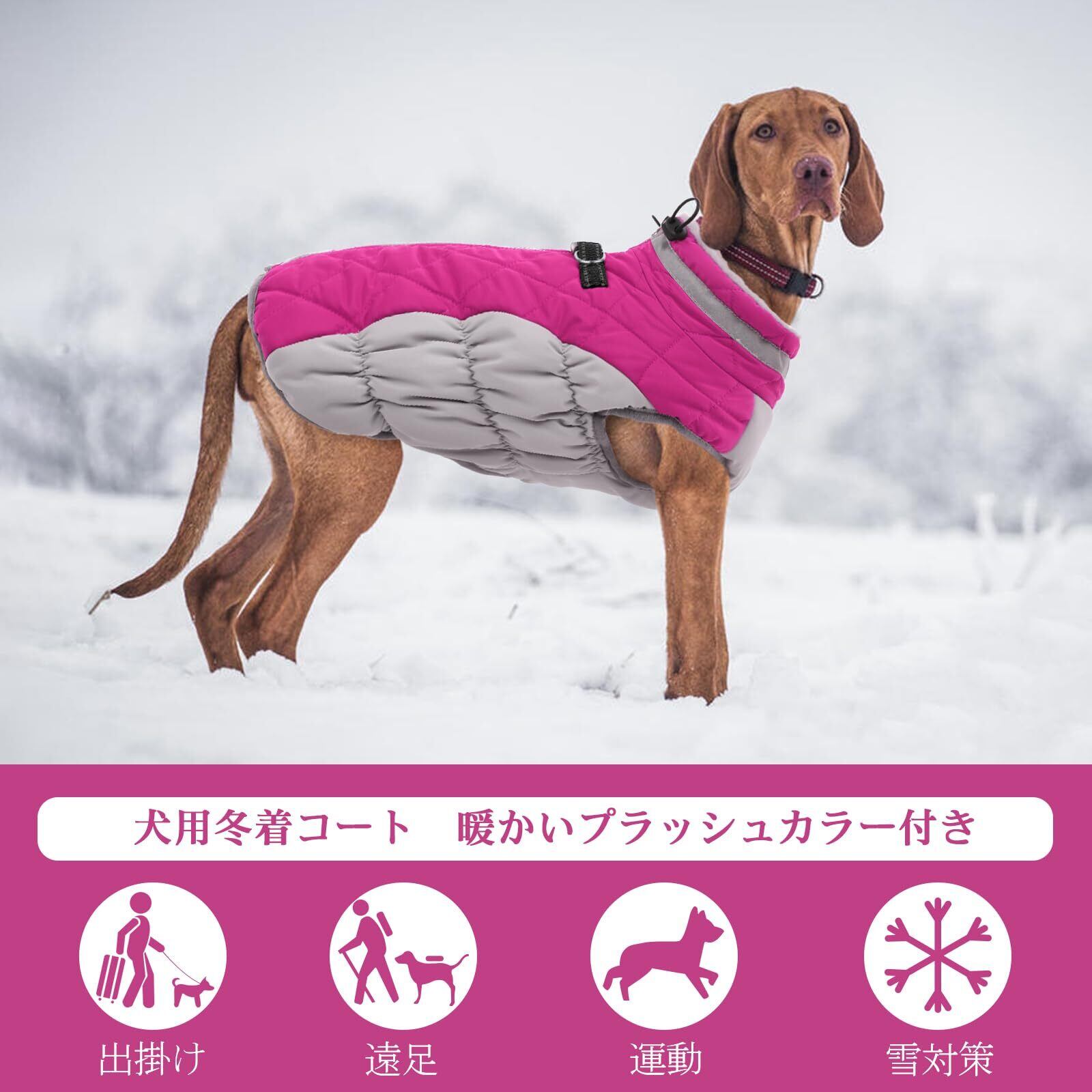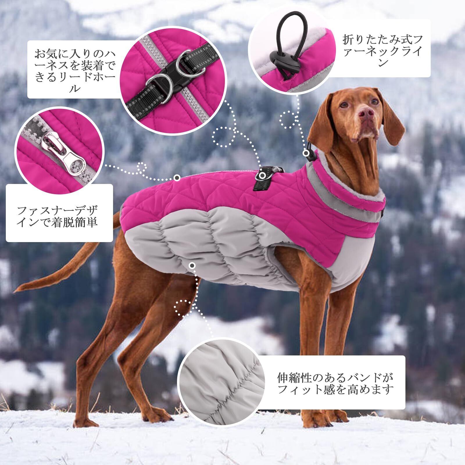Kuoser犬用ジャケット防寒コート 冬服 防水 暖かい 中型犬 ファスナー付き 着脱簡単 防風服 雪対策 洗濯機洗い 冬用アウトドアウェア ローズレッドL