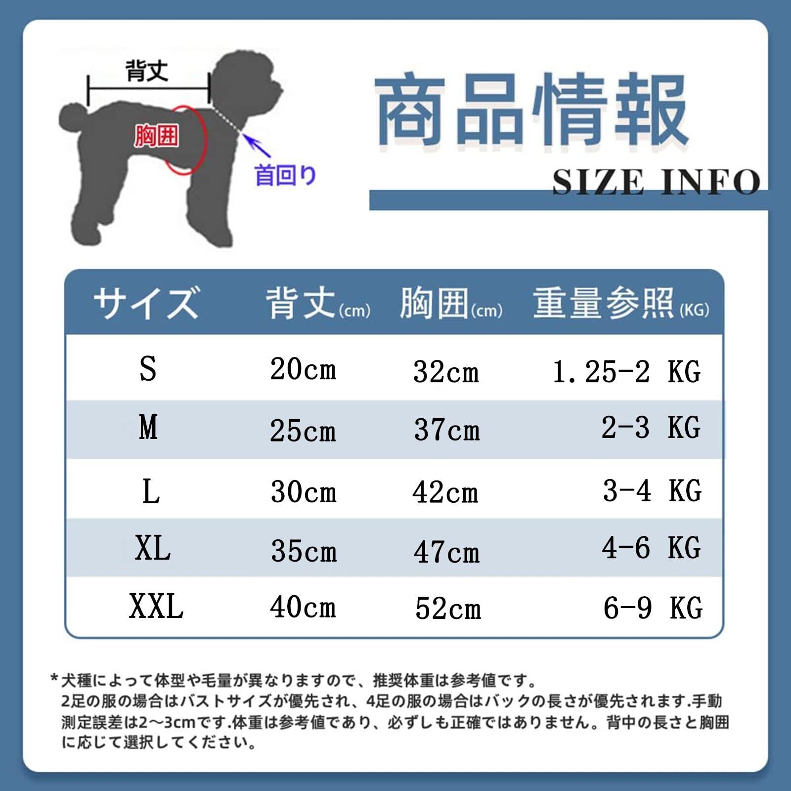【ご注意】ワンちゃんの動きやすいよう若干ゆとりのあるサイズをおすすめしております。購入する前に、サイズの詳細をご確認してくださいませ 。重量は参考値です。
