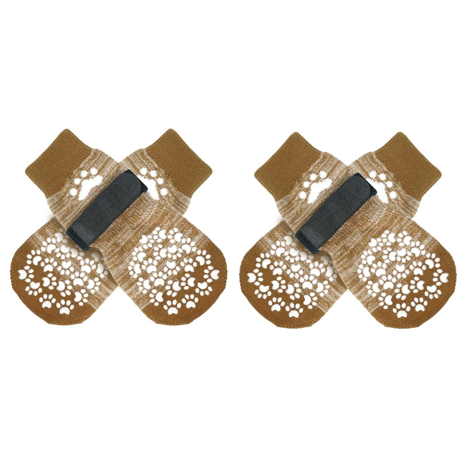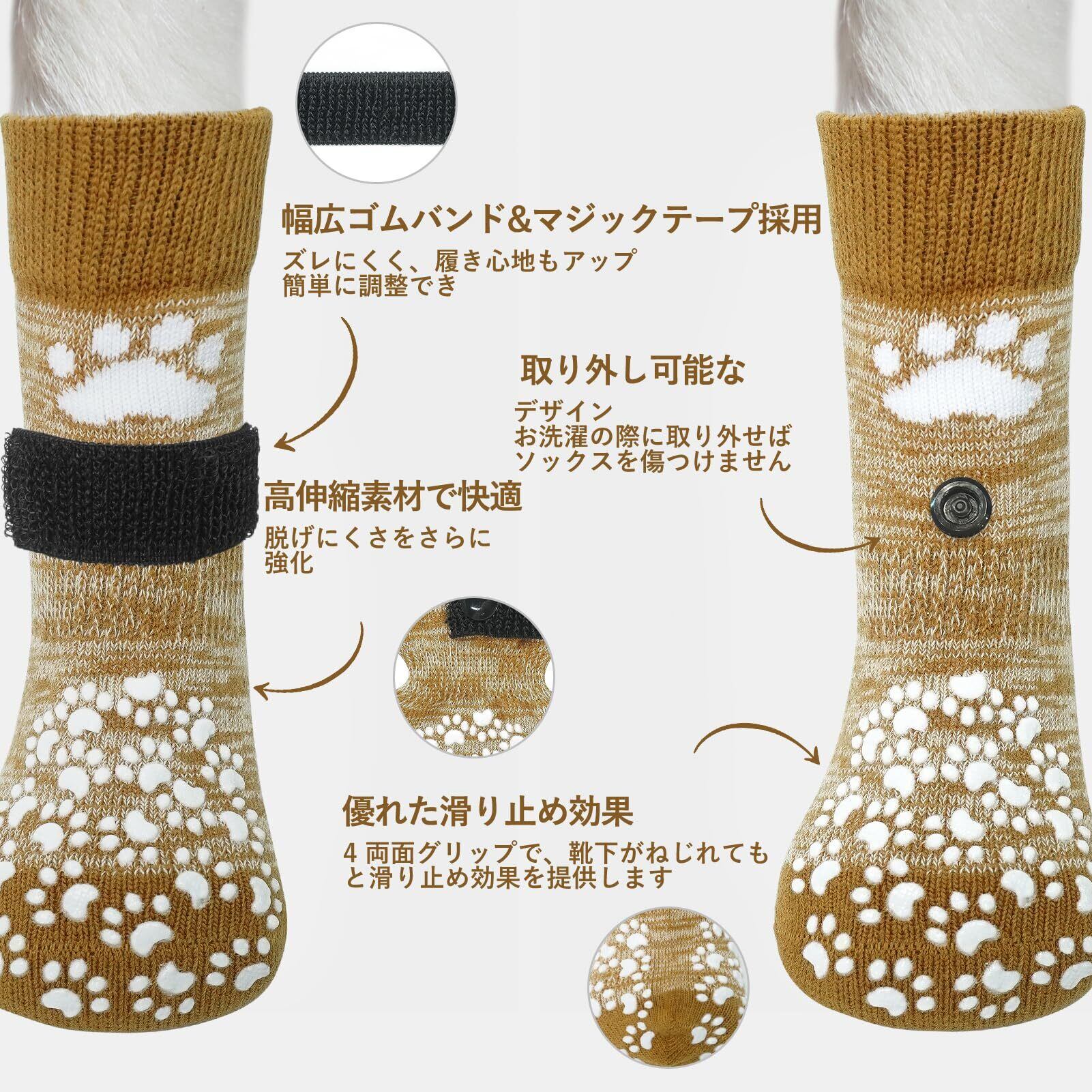 EXPAWLORER 犬 靴下 滑り止め 足舐め防止 4個セット 肉球保護 犬用靴下 脱げない 柔らかい 通気性 伸縮性 マジックテープ付き 老犬 介護用 保護 肉球 ケア 怪我防止 かわいい 超小型犬 小型犬 中型犬 シニア犬 (カーキ,XSサイズ)