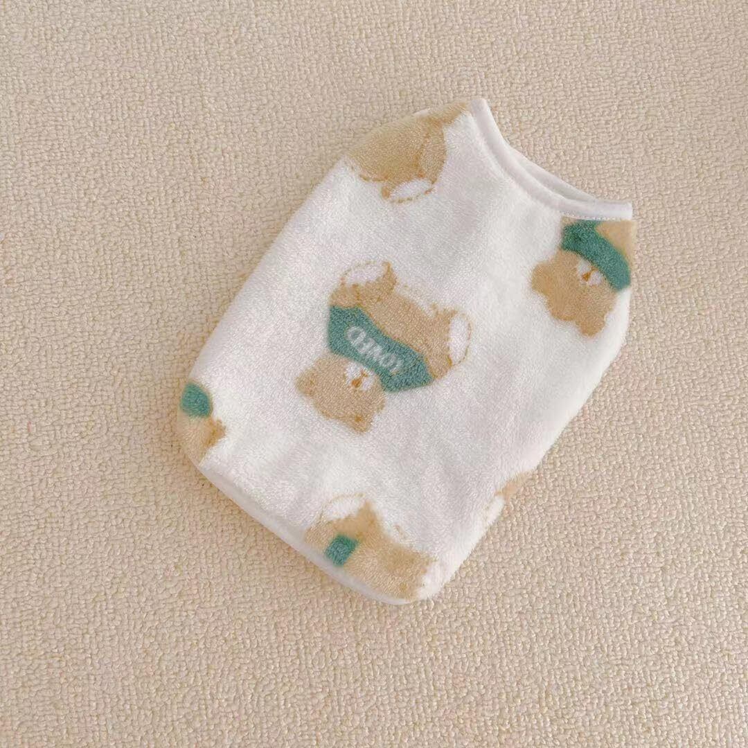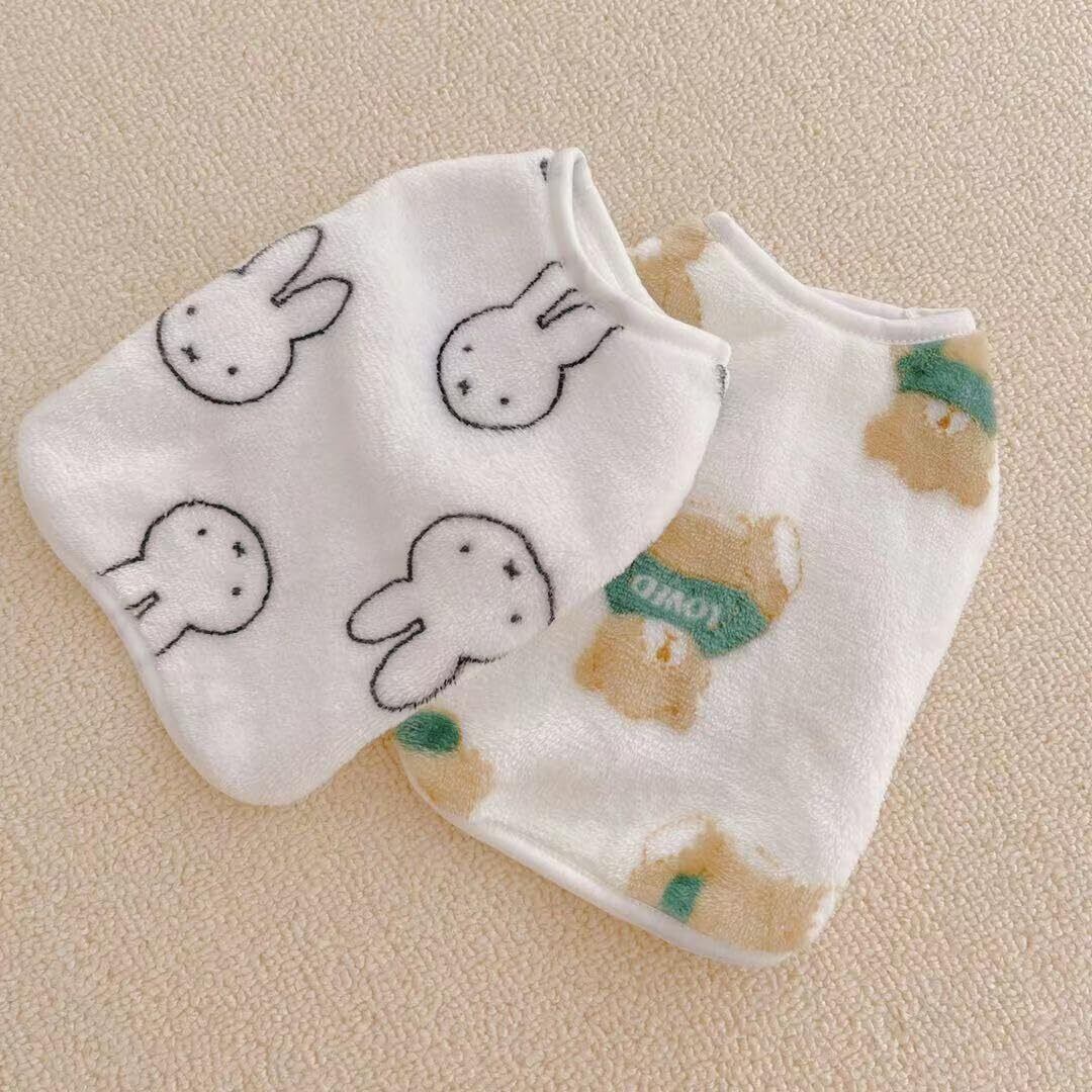 RIOSTUDIO 犬服 秋冬 パピーサイズ有 犬の服 秋 冬 子犬服 (XXS~XXL) モコモコ ふわふわフリースベスト ノースリーブ タンクトップ パピー服 極小サイズ 犬 猫 防寒 暖かい(①ホワイト×うさぎちゃん,XXS)