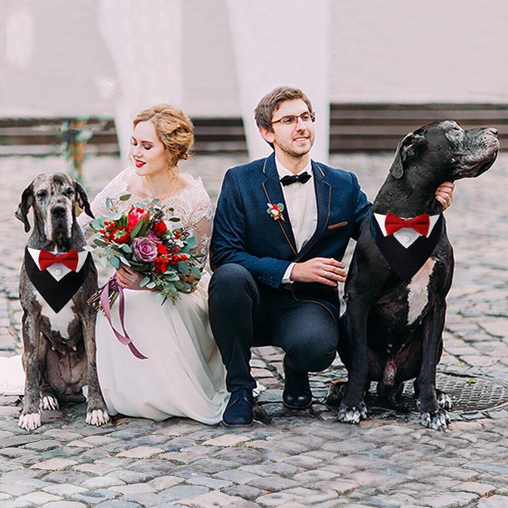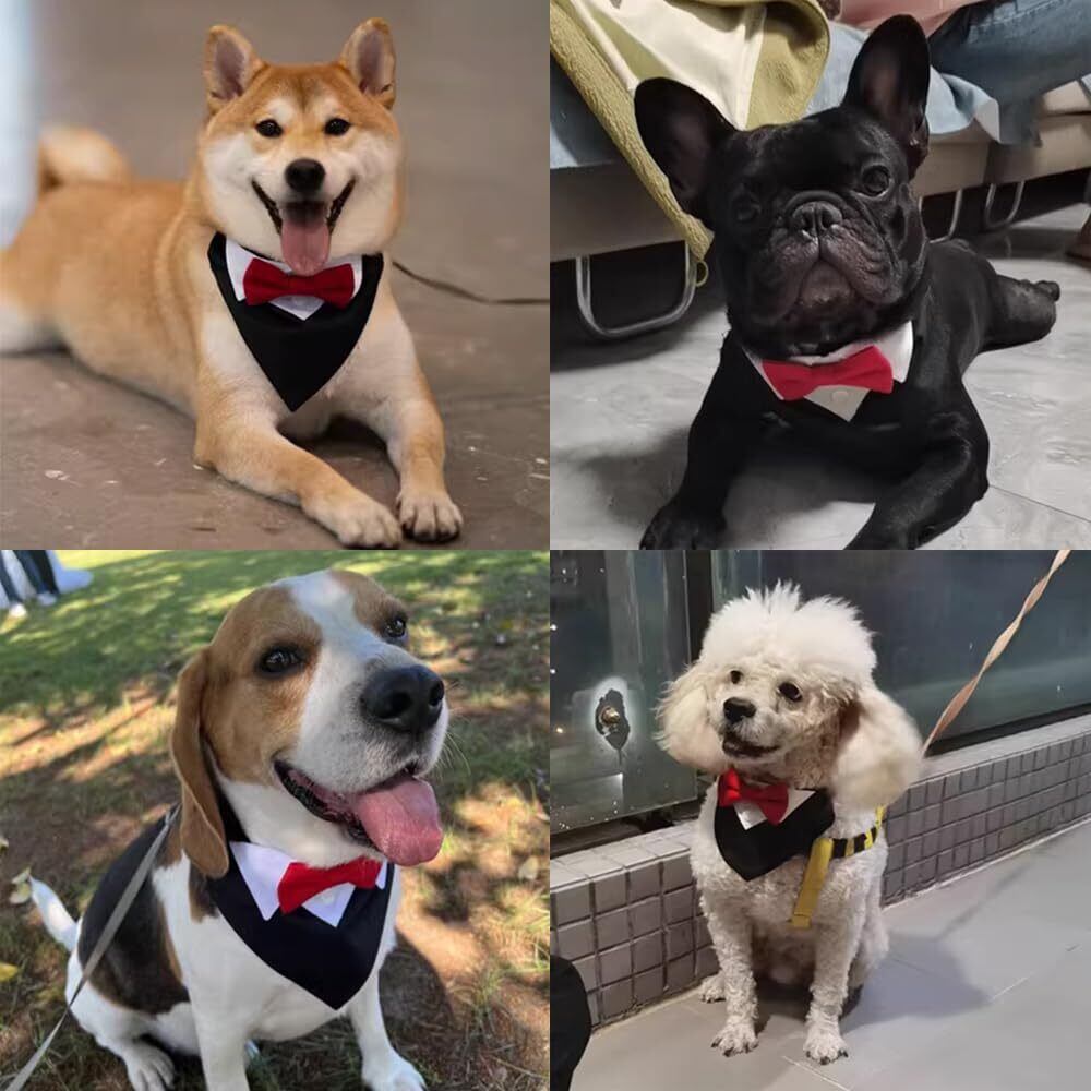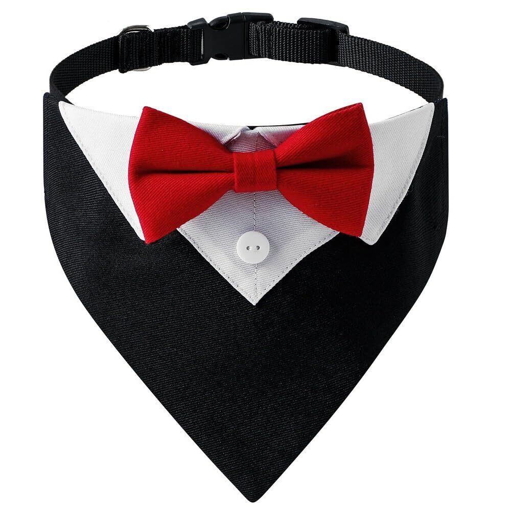 YBGGJO フォーマルドッグタキシードバンダナ 犬猫用スカーフ 犬のタキシードコットンバンダナ 蝶ネクタイとネクタイ付き 誕生日 結婚式 パーティー 記念撮影(レッド, S)