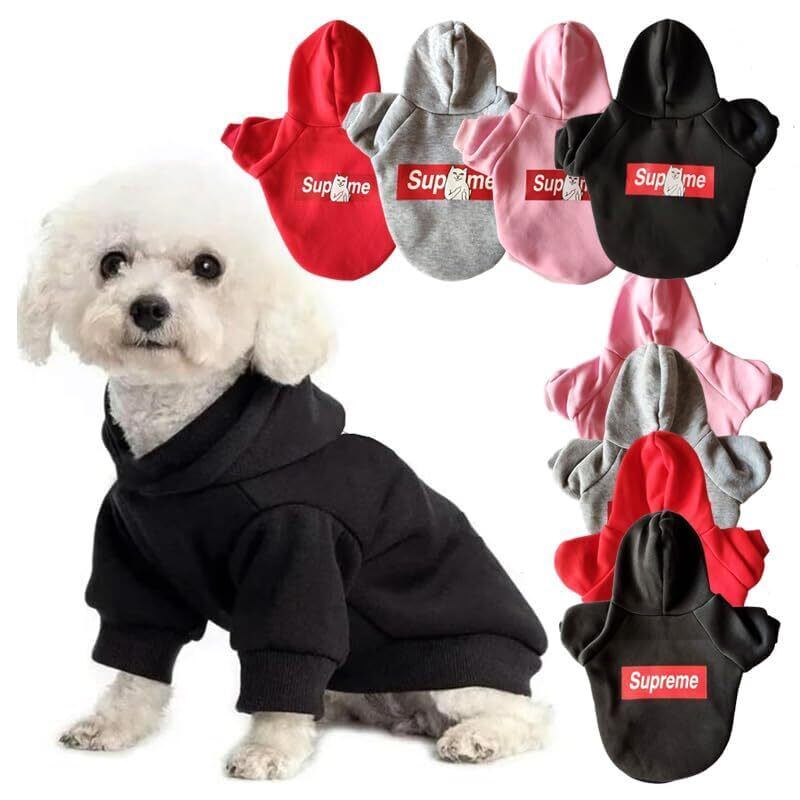 フード付きデザイン:可愛らしいフード付きで、見た目も可愛く、ワンちゃんの耳や頭を寒さから守ります。