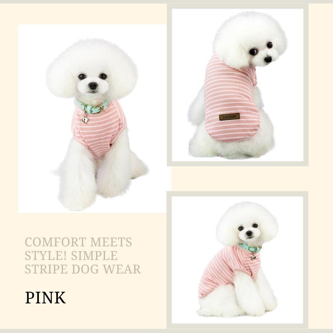 PetGround 犬 服 小型犬 春 夏 秋 冬 小型犬 中型犬 ボーダー シャツ 着せやすい 防寒 伸縮性 かわいい おしゃれ 犬服 (L, ピンク)