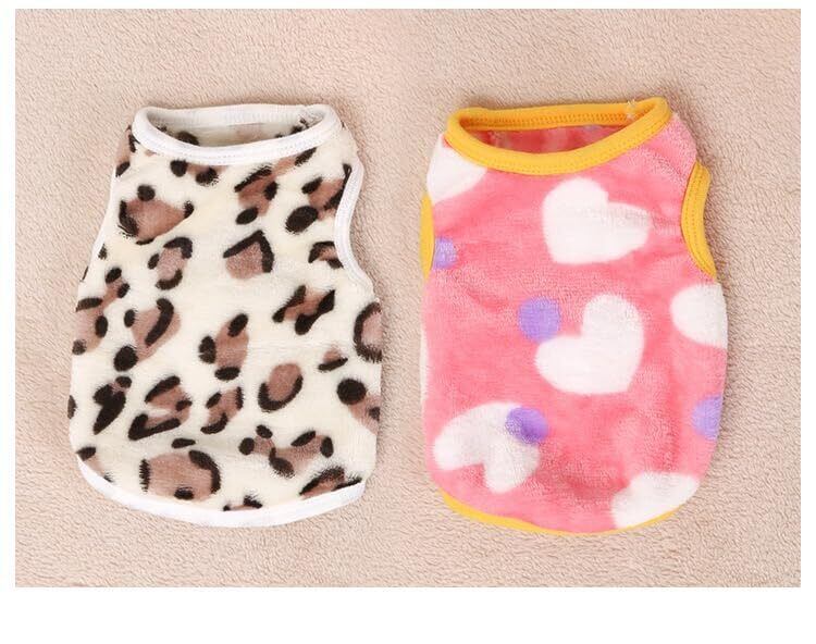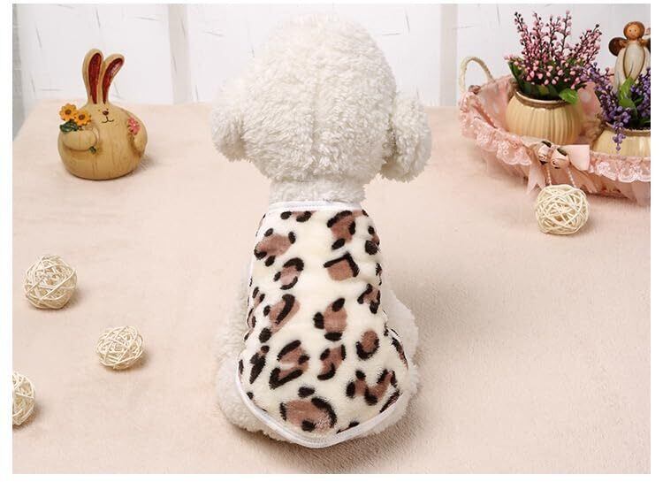 RIOSTUDIO 犬服 秋冬 パピーサイズ有 犬の服 秋 冬 子犬服 (XXS~XL) モコモコ ふわふわフリースベスト ノースリーブ タンクトップ パピー服 極小サイズ 犬 猫 防寒 暖かい(㉒ヒョウ柄,M)