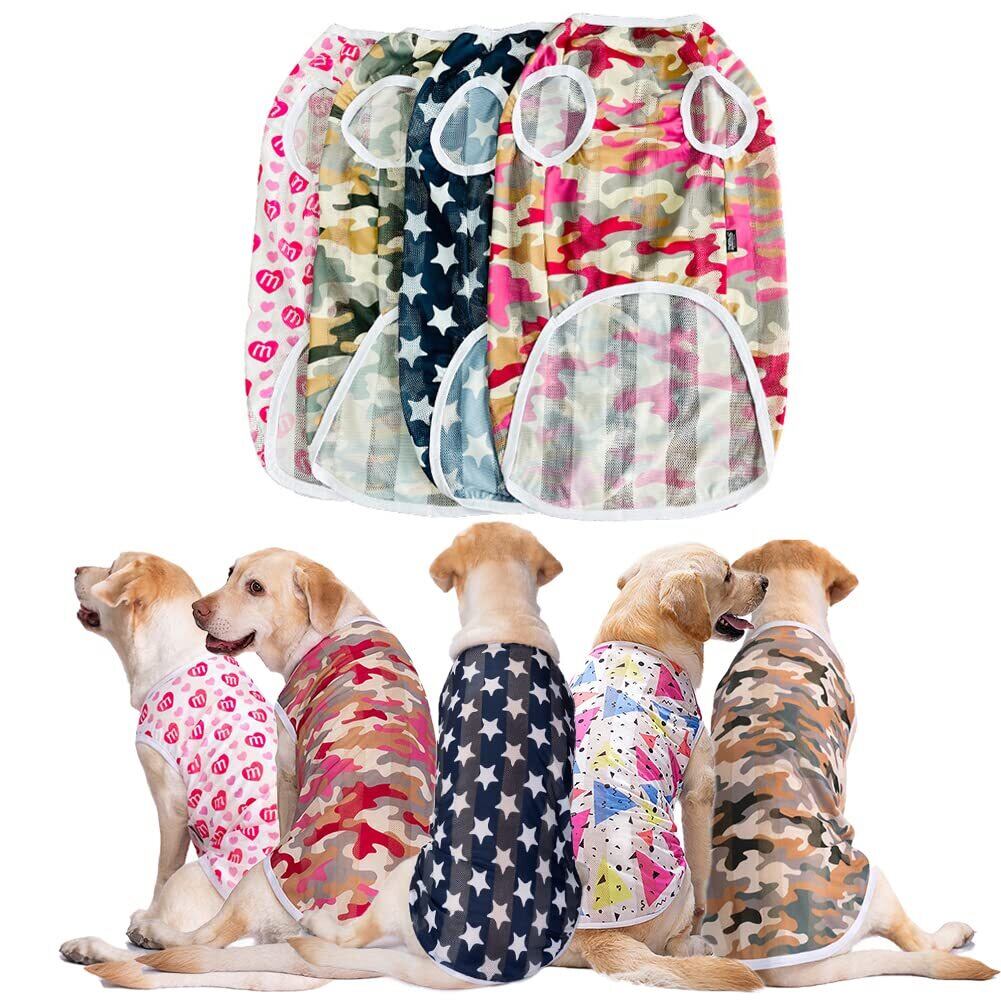 KUVEELA PET 犬服 犬 犬の服 服 夏 春 夏服 ドッグウェア Tシャツ お出掛け お散歩 日焼き防ぐ 脱毛保護 通気性 おしゃれ 大型犬 中型犬((メッシュ)ハート 6L)