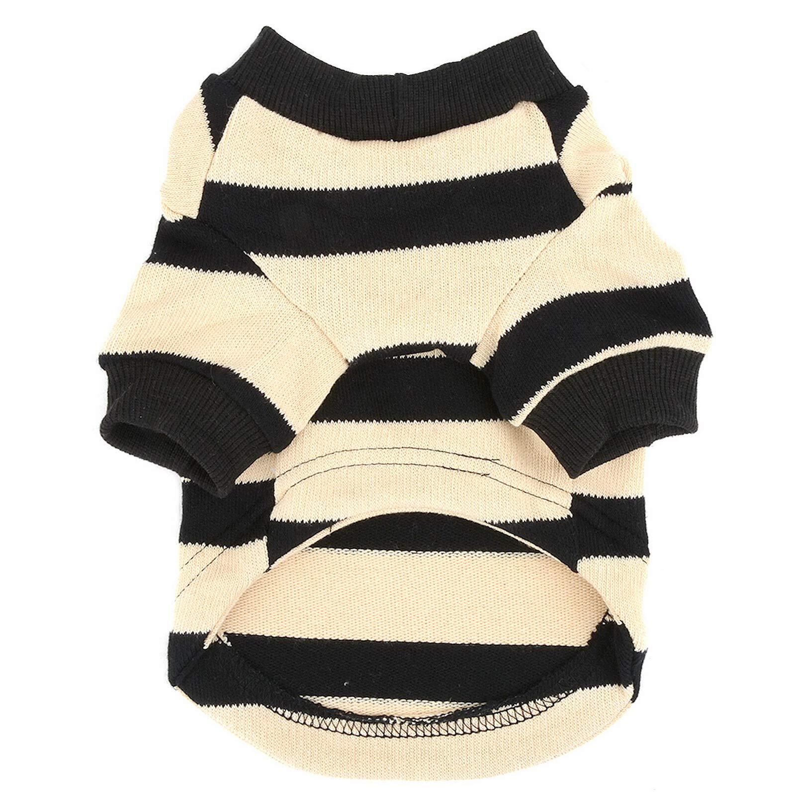 ZUNEA 犬服 秋冬 ニット セーター 小型犬 おしゃれ かわいい ストライプ コート ジャケット 暖かい 防寒 綿服 冬服 あたたかい tシャツ ペット 猫用 トイプードル チワワ ドッグウェア 洋服 お散歩 ブラック L