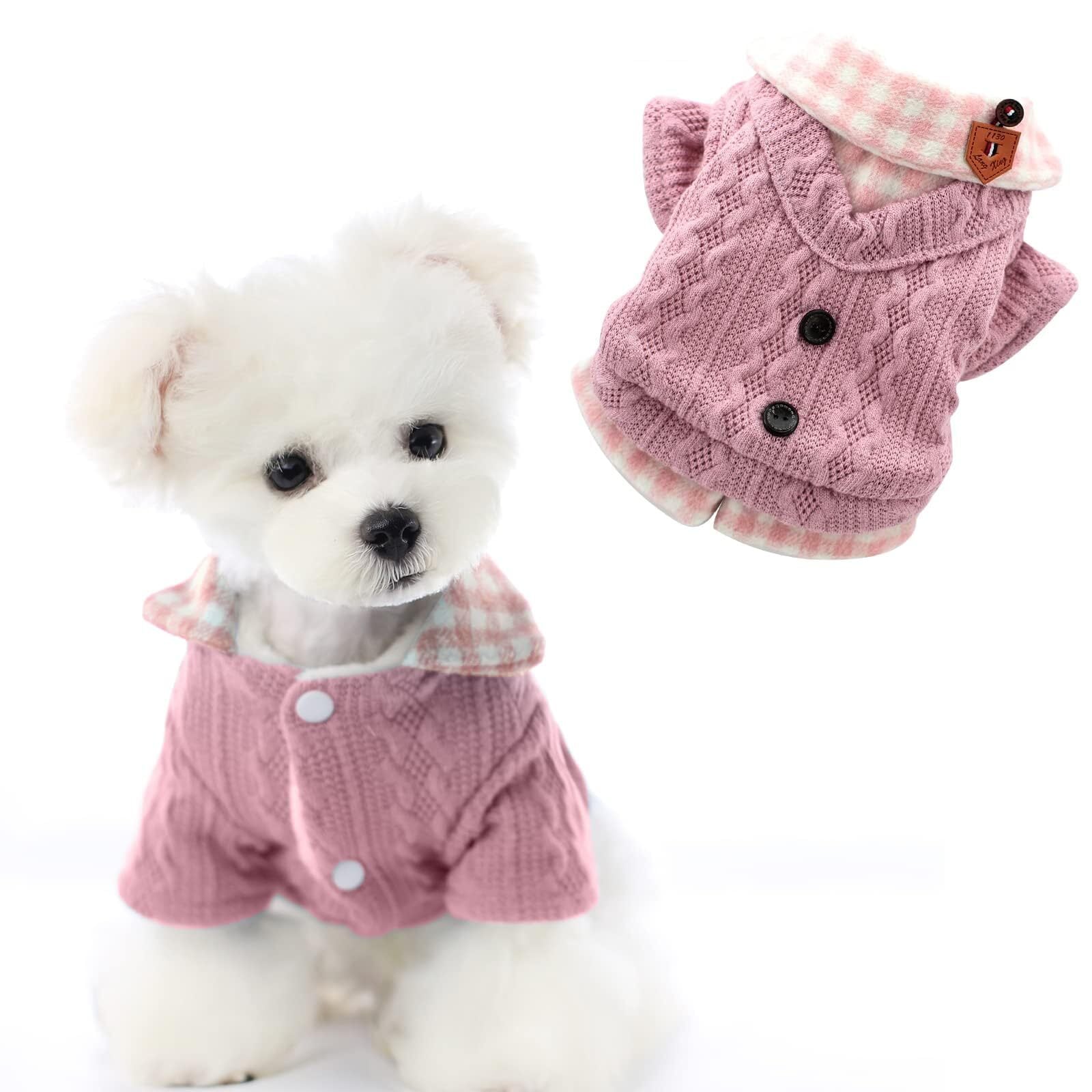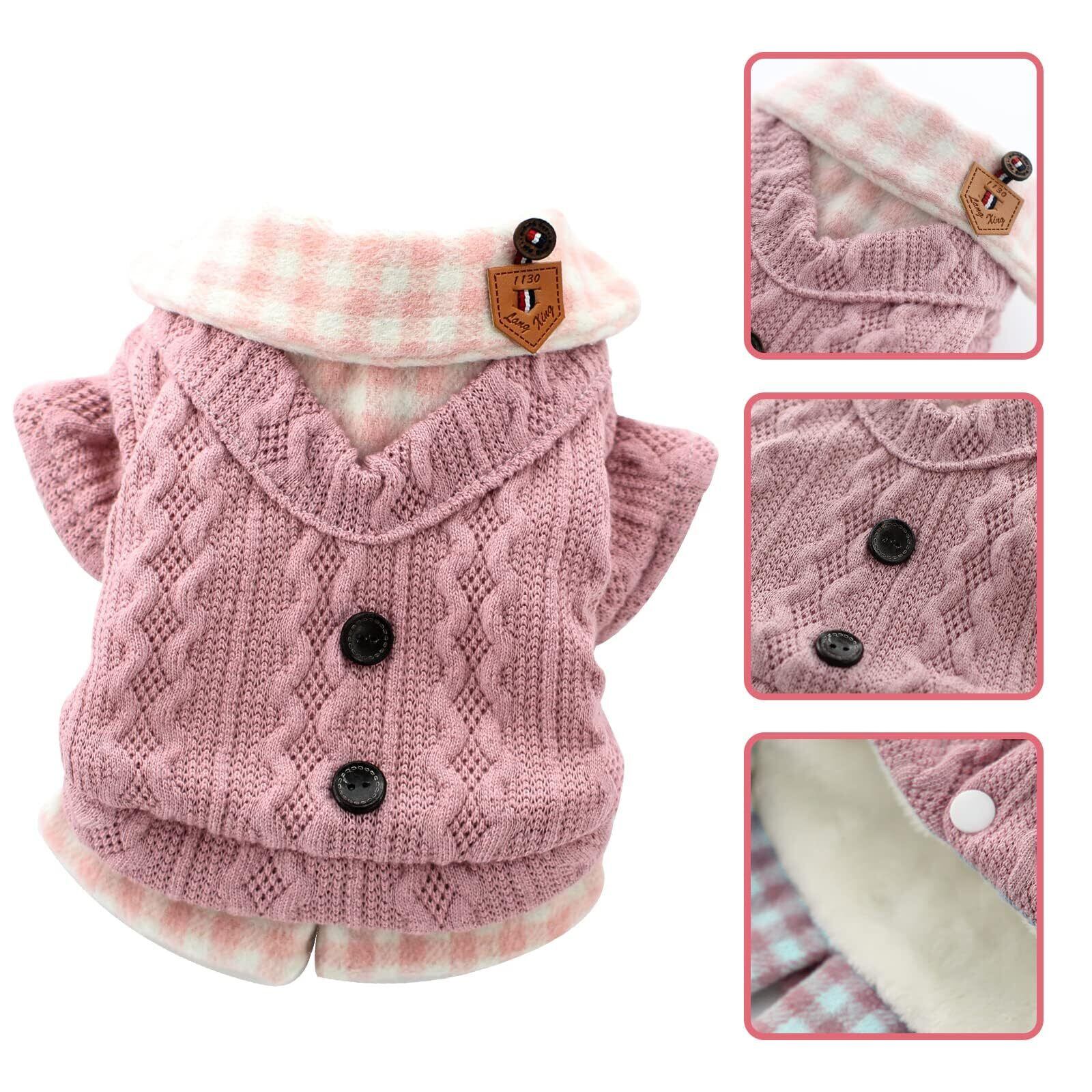 ペット服 セーター 犬服 猫服 かわいい 秋冬 暖かい 防寒 柔らかい 裏起毛 おしゃれ ニットセーター 犬の服 小型犬 中型犬 猫 コスプレ 写真 お出かけ (ピンク, M)