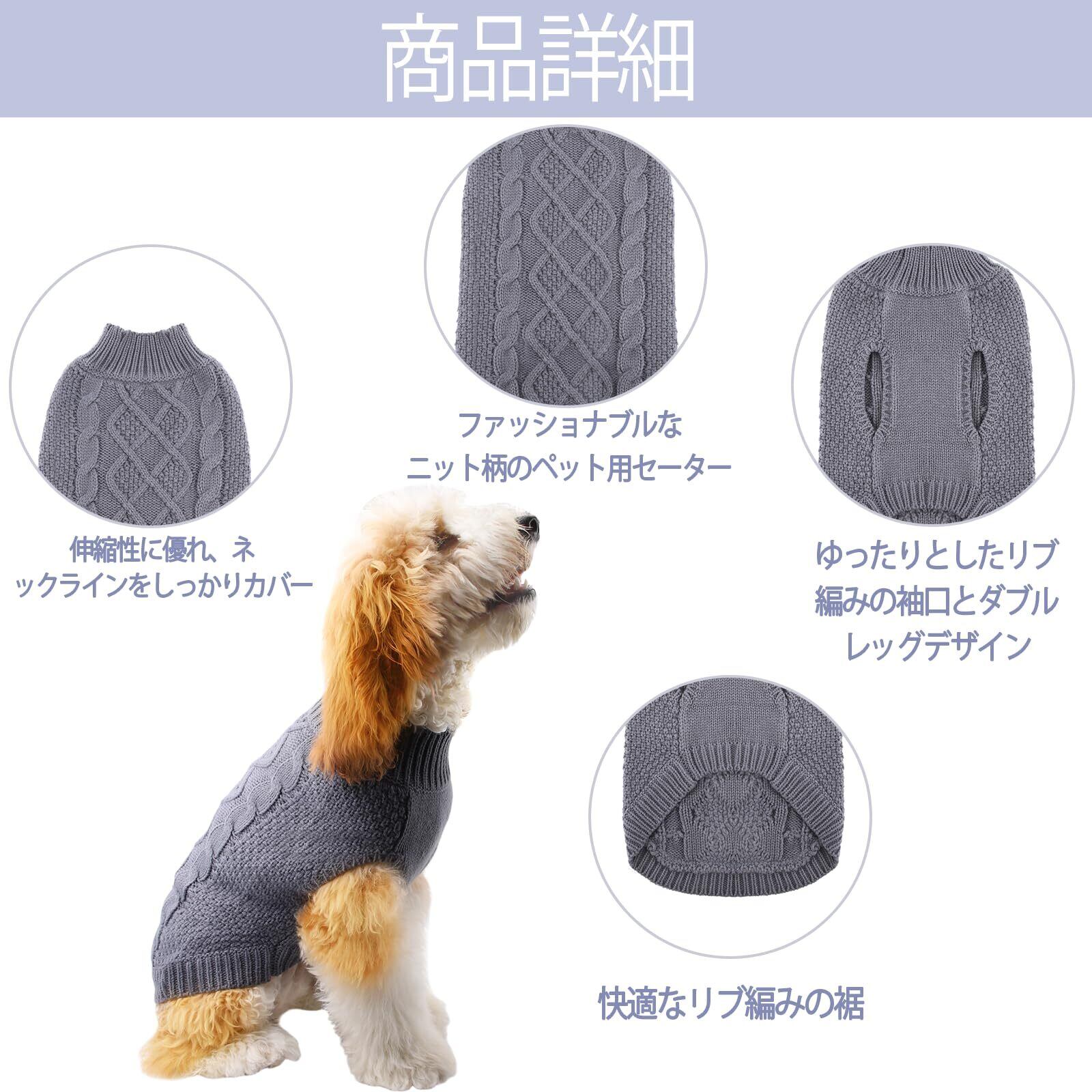 TONY HOBY 小型犬用セーター ニット 暖かい 犬用 スウェットシャツ 犬用 冬用 コート 子犬用 寒い季節用 プルオーバー クラシックニットウェア ドギーセーター 厚手 暖かい 冬用 ペット服 (M、グレー)