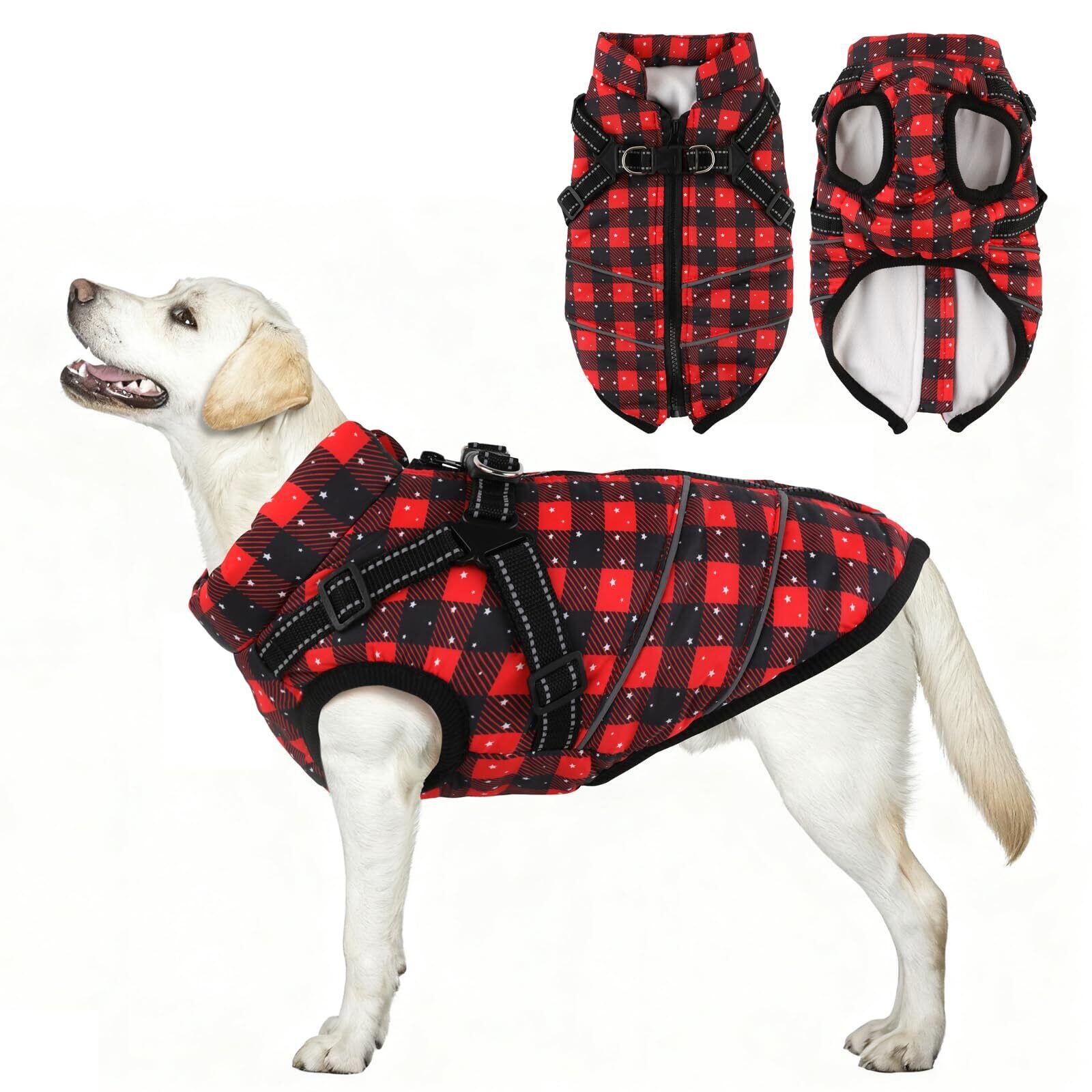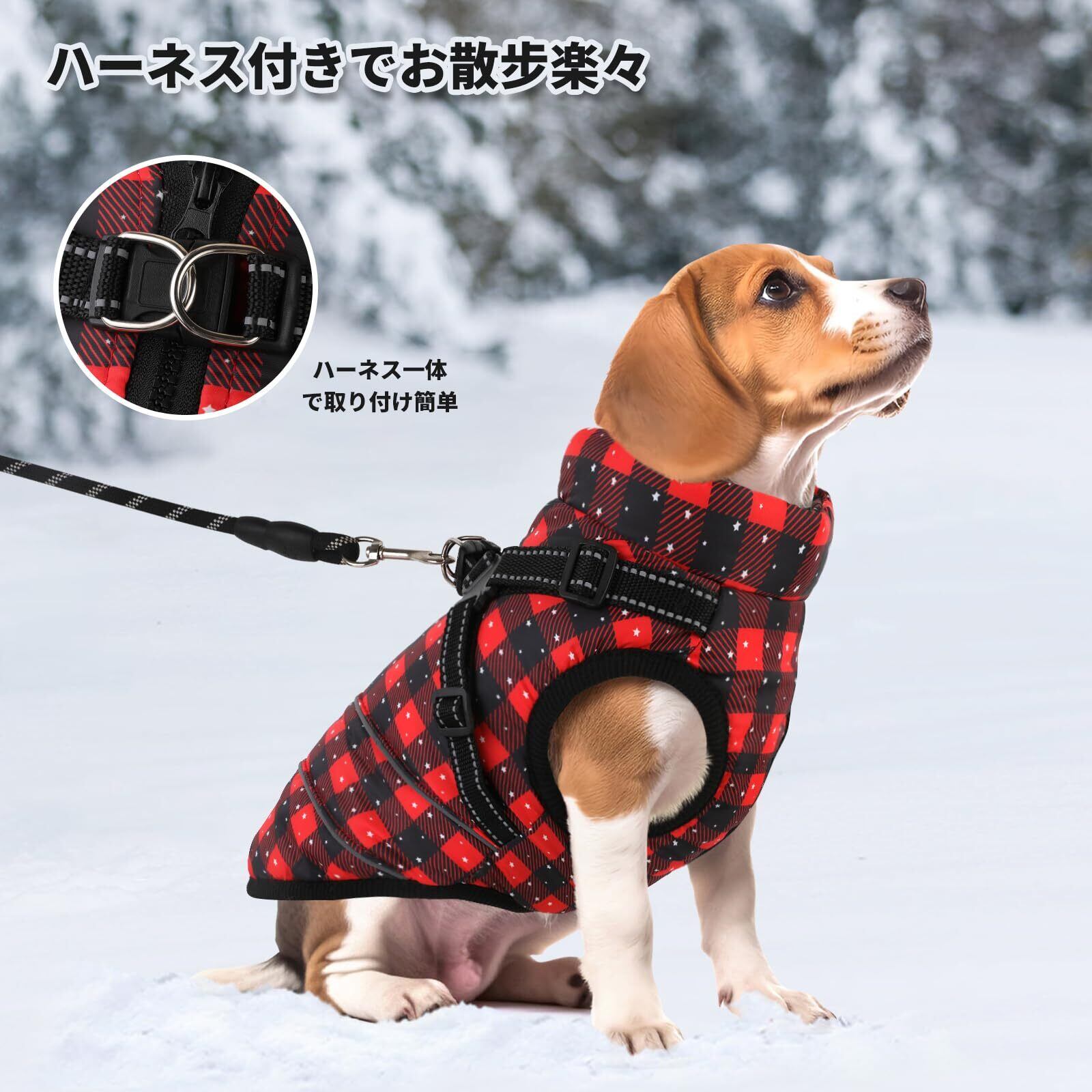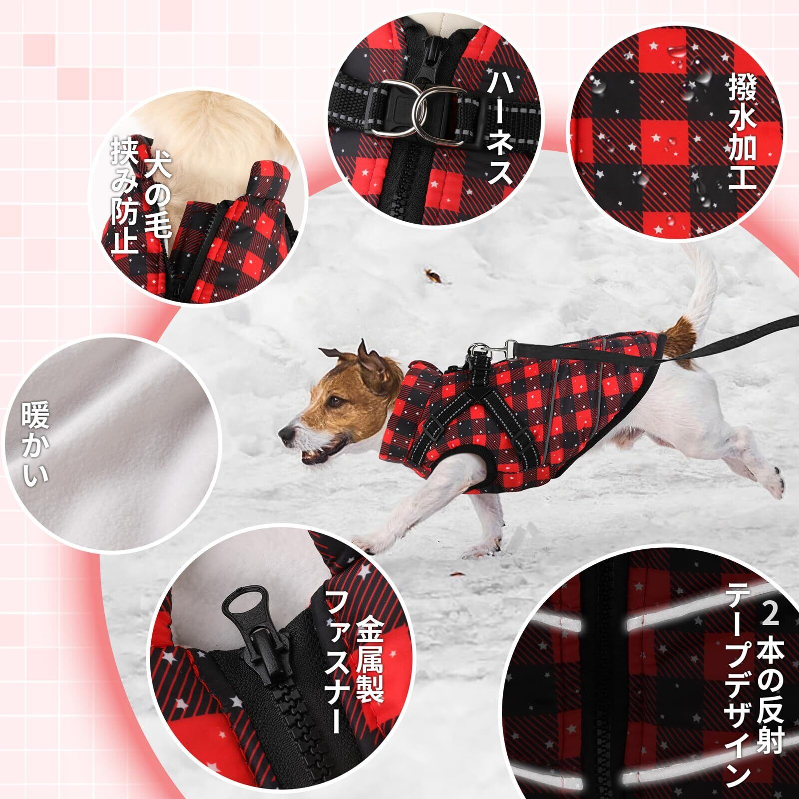 Koramaku 犬服 綿服コート 一体型綿コート 反射テープデザイン ハーネス付き 背中開き おしゃれ 牽引 夜間反射 暖かい ペット 猫 犬 服 冬 小型犬 中型犬 着脱簡単 裏起毛 ベスト 防寒 防水 撥水 ジャケットリードリングあり お散歩(Plaid,2xl)