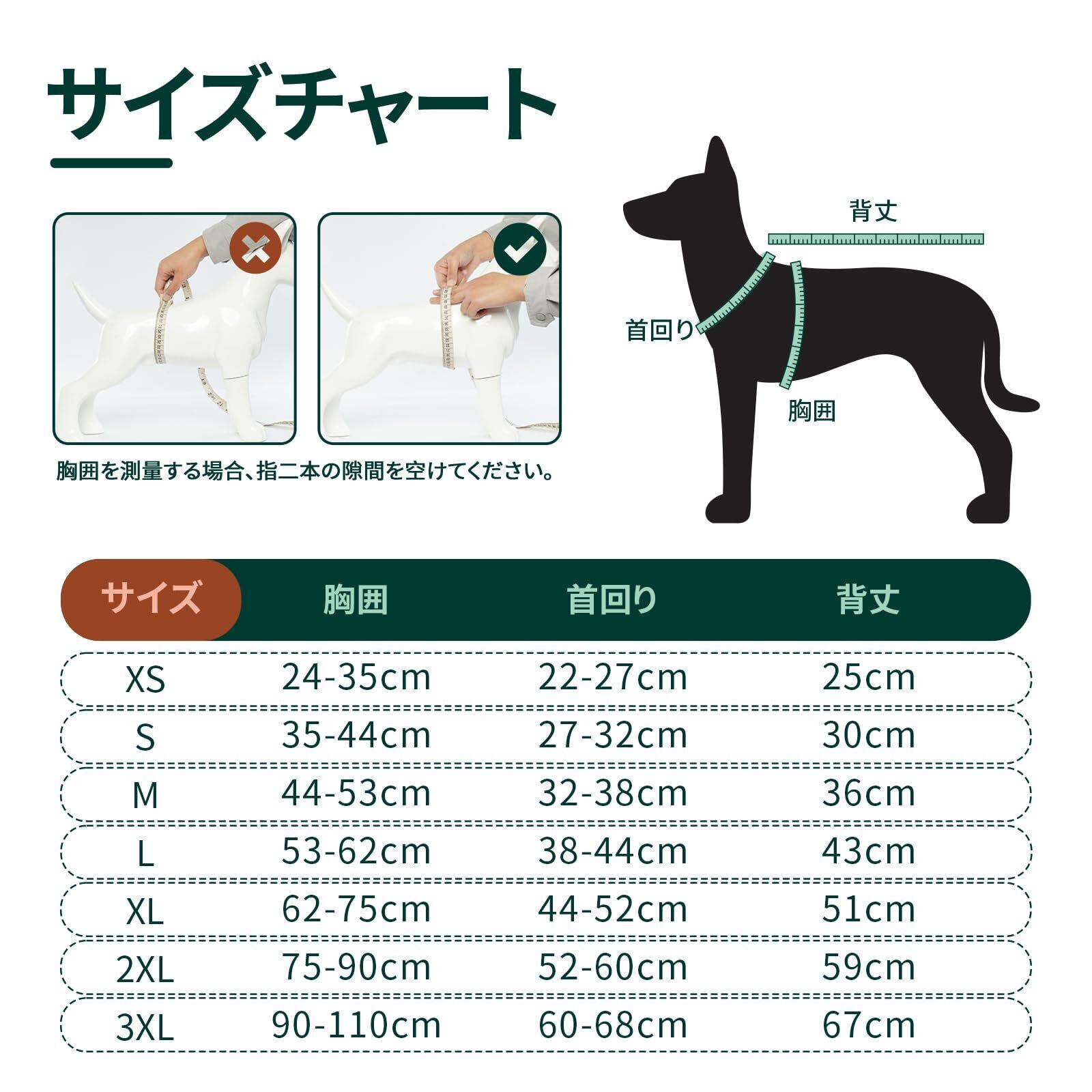 【7サイズ利用可能】XS~3XL共に7サイズが利用でき、ほとんどの犬種に適用しています。ご注文する前に愛犬の胸囲、首周りと背丈をあらかじめ測量してください。