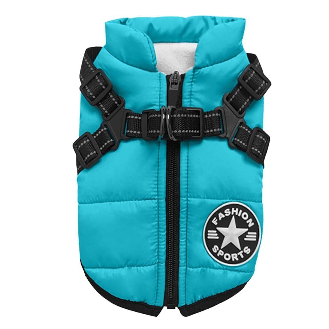 IGUGHI ふわふわ ダウンベスト風ジャケット 犬洋服 冬 裏ボア 犬服 ジャケット パーカー 袖なし ドッグウェア 防寒 防水 リードリングあり 綿服アウター お出かけ 散歩 小型犬 中型犬
