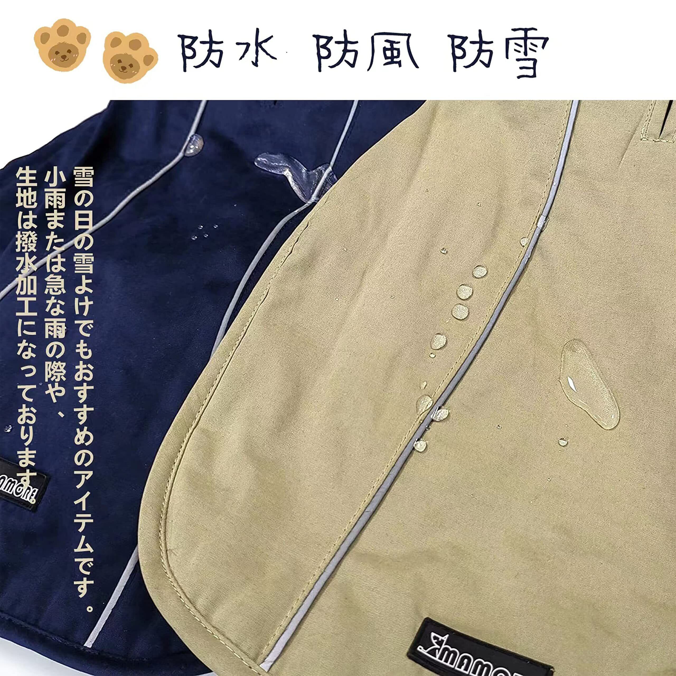 【防水防風・通気】表地は撥水加工済み、突然の雪や雨でも濡れなくて安心! もちろん特段と冷える日や朝晩のお散歩には普段着ているお洋服にプラスして防寒するのにも使えます。