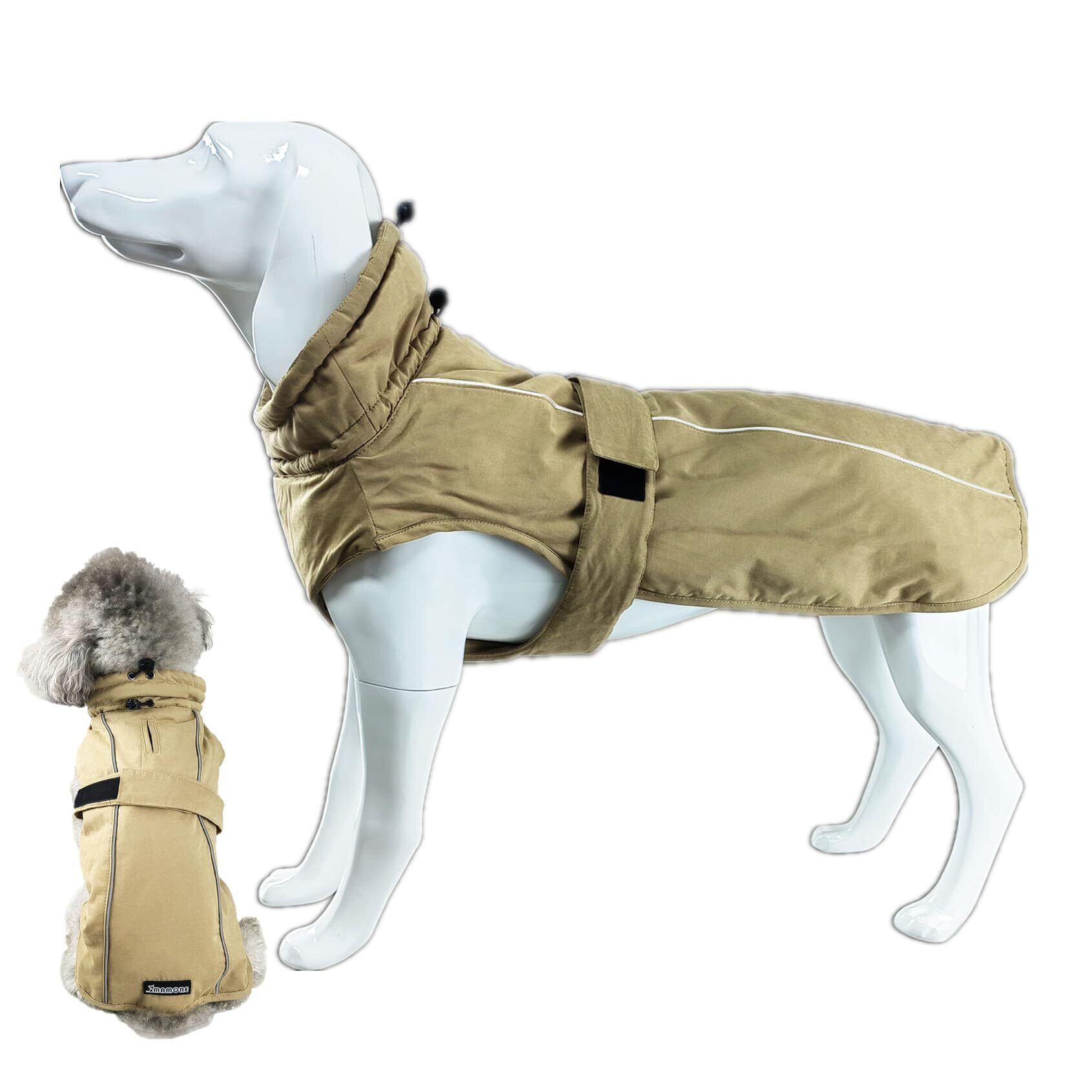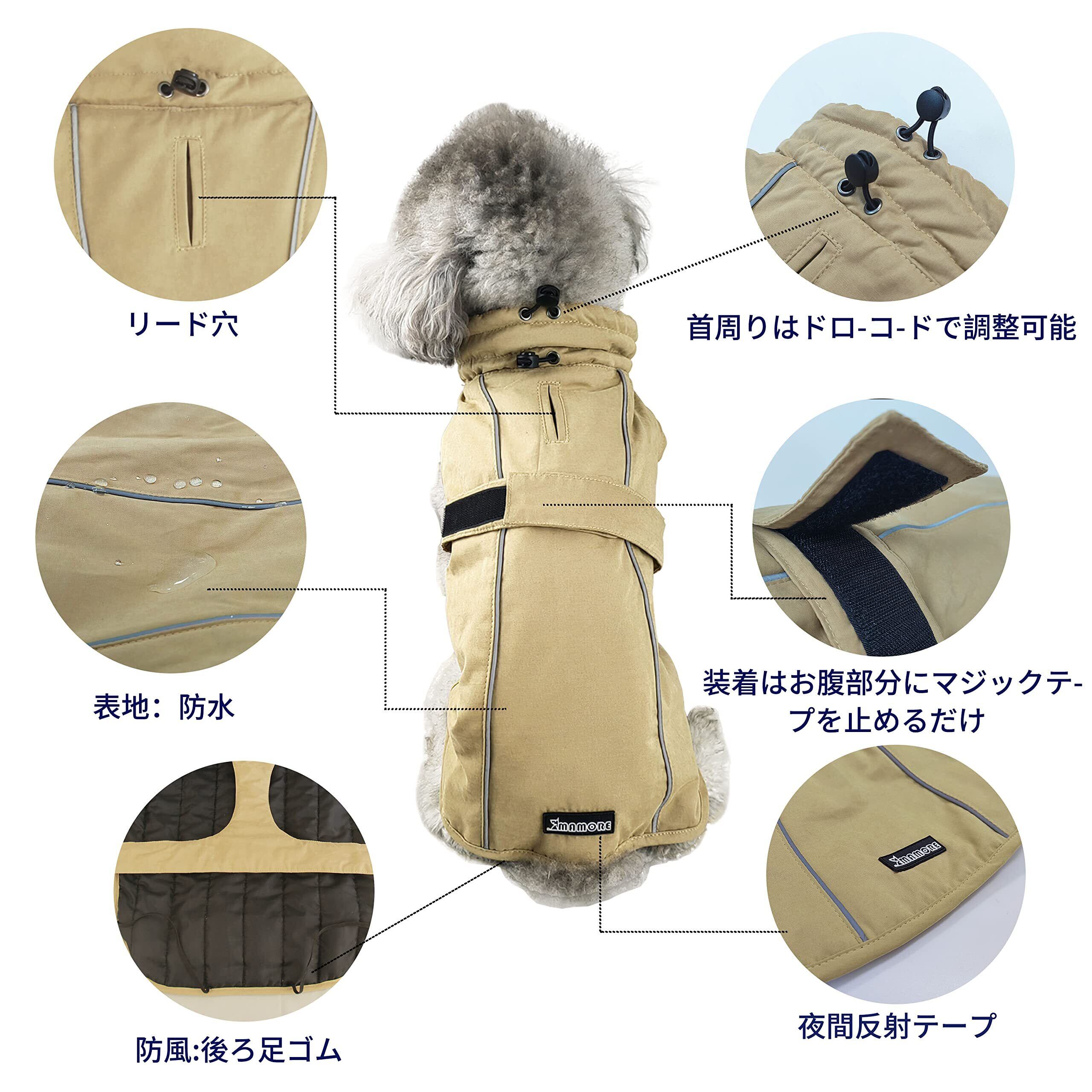 MAMORE 犬服 冬服 防寒着 防水 ジャケット コート ダウン ペット服 保温 小中型犬 大型犬 反射 防風 着脱簡単 お散歩 (2XL, カーキ)