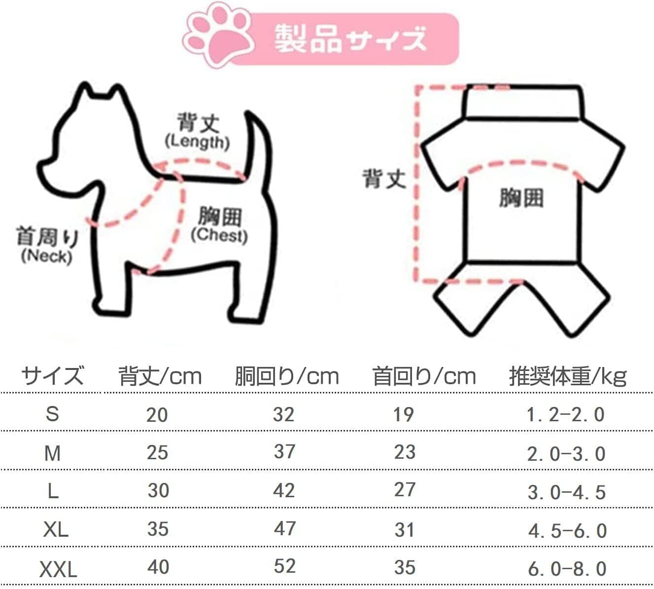 サイズ-----背中の長さ------胸囲---------推奨体重