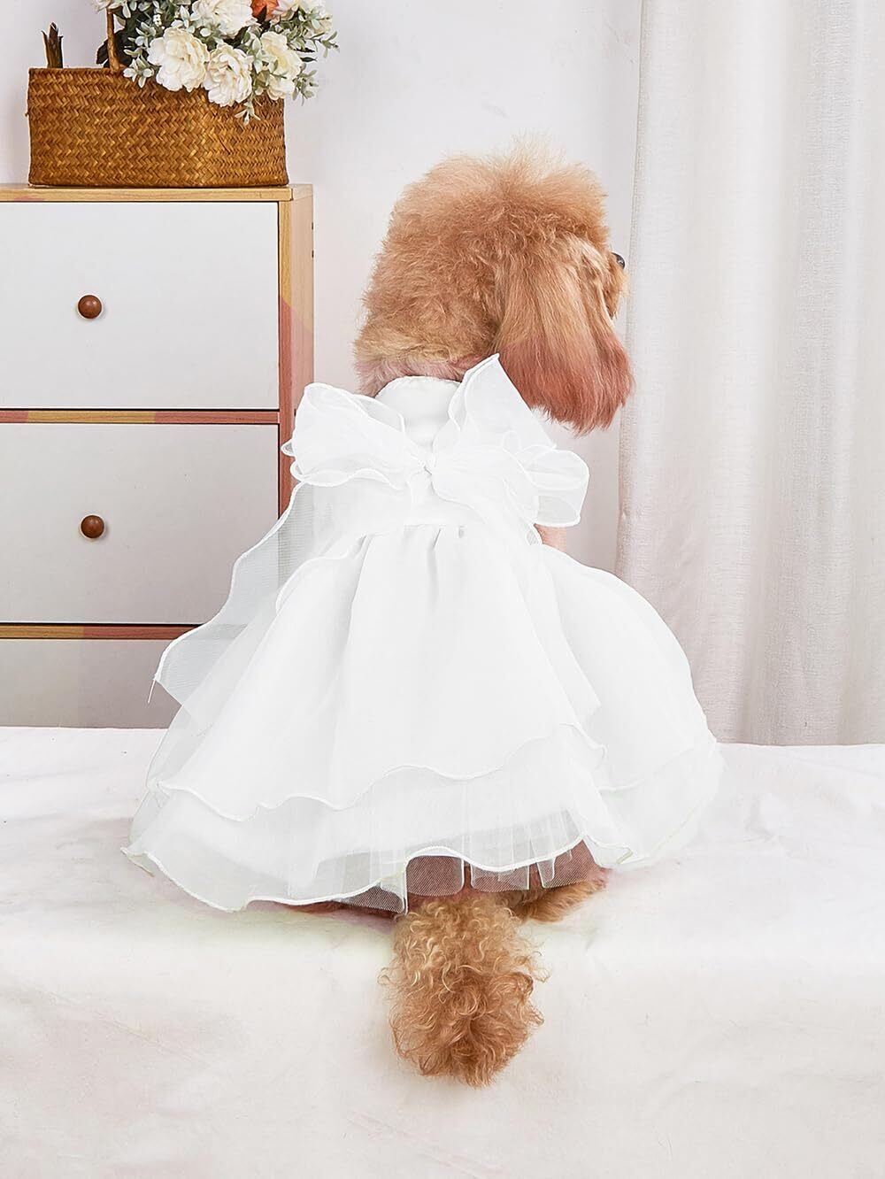 YBGGJO 犬 ウエディングドレス ペットのドレス ドッグウェア 手作り犬服 パーティードレス ワンピース 上品 華やか お姫様 猫 小型犬 結婚式 お祝い 記念パーティー 記念撮影 (ホワイト, S)