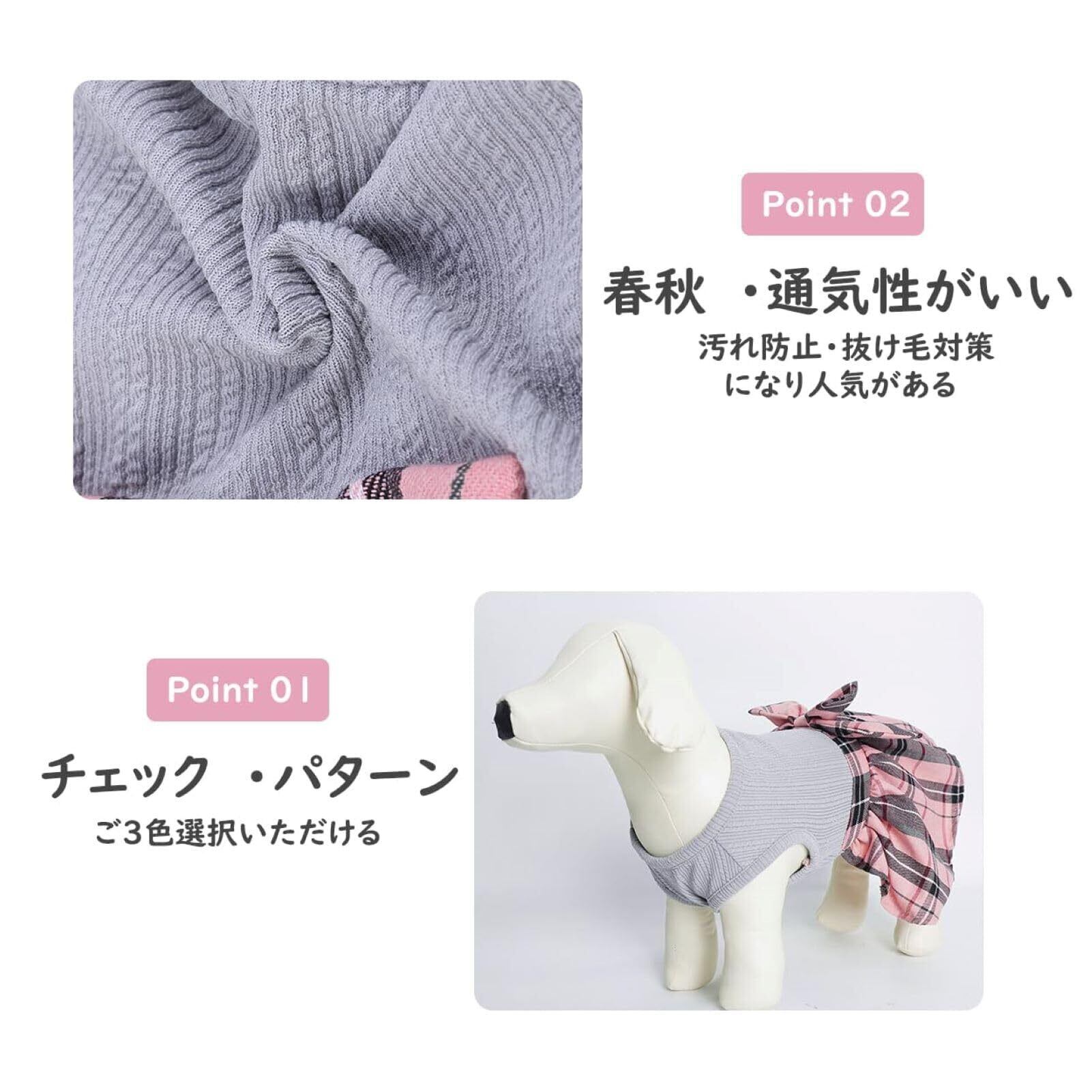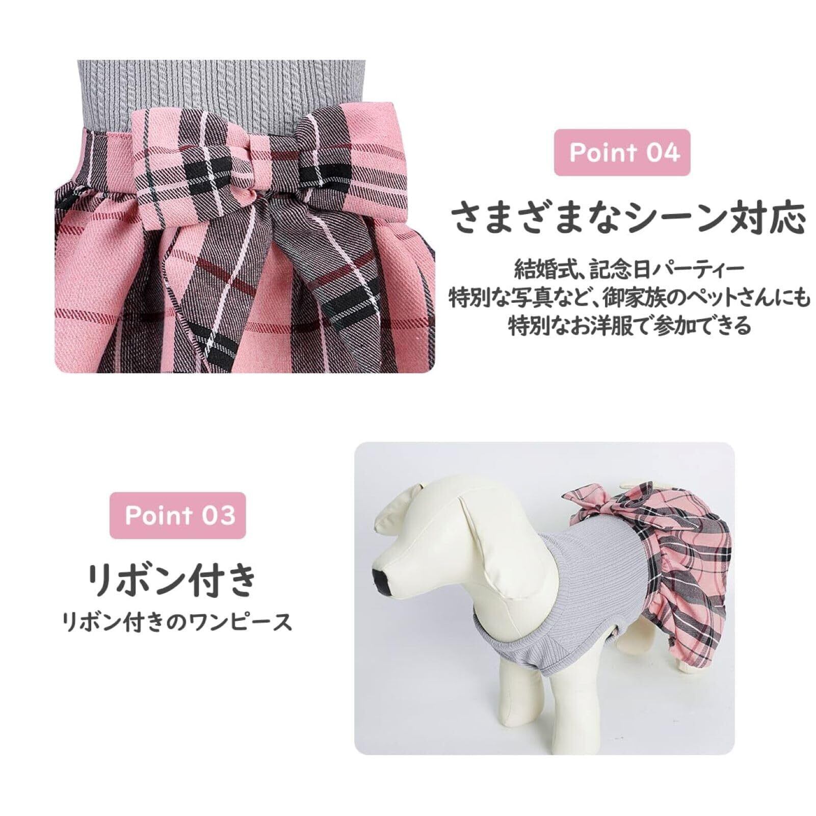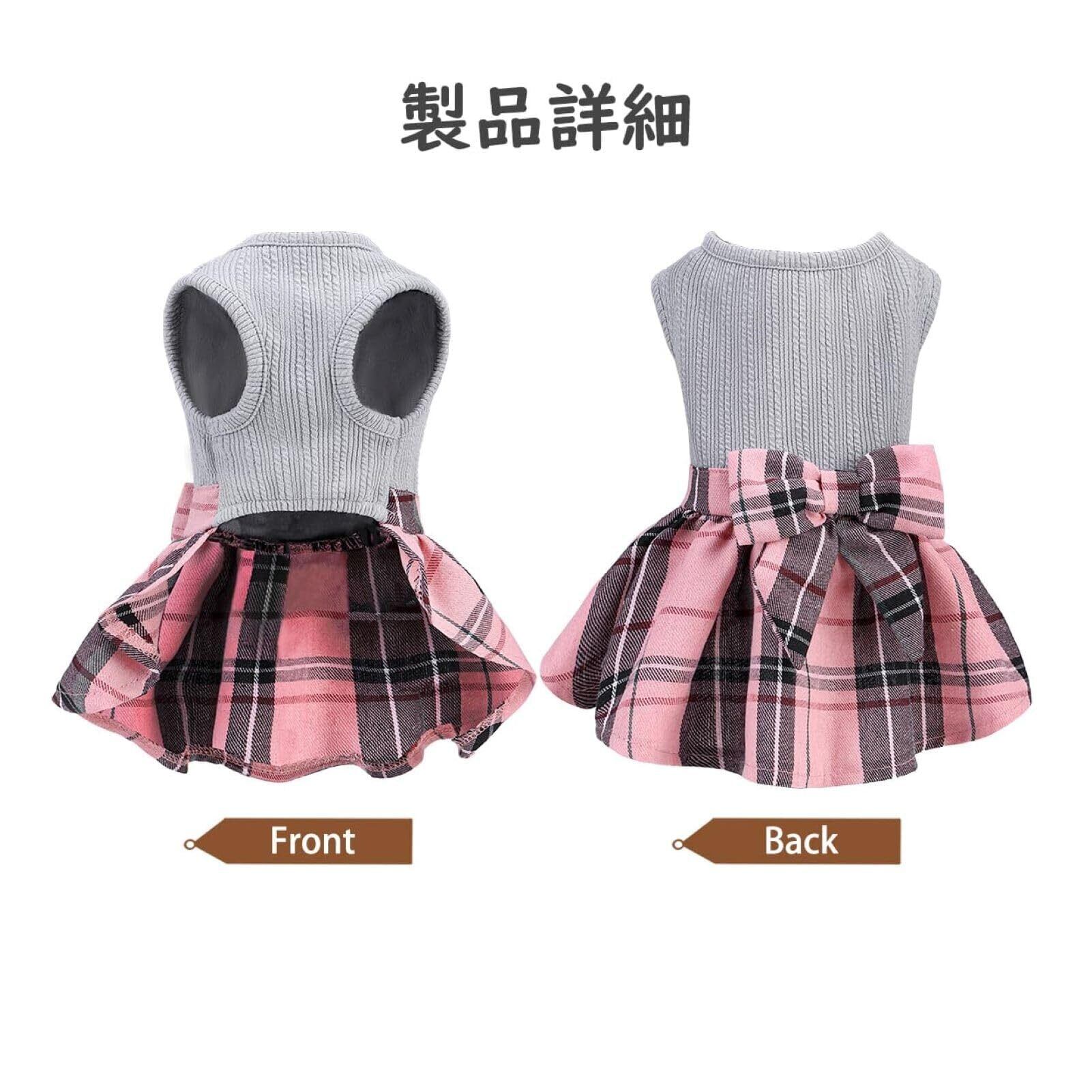 BINGPET 犬 服 ワンピース 犬の服 ペット服 洋服 チェック柄 春夏秋 トイプードル 服 可愛い 女の子 おしゃれ ドッグウェア ドレス スカート ペット用 袖なし お散歩 リボン付き 超小型犬 小型犬 中型犬 猫 (ピンク&チェック, M)