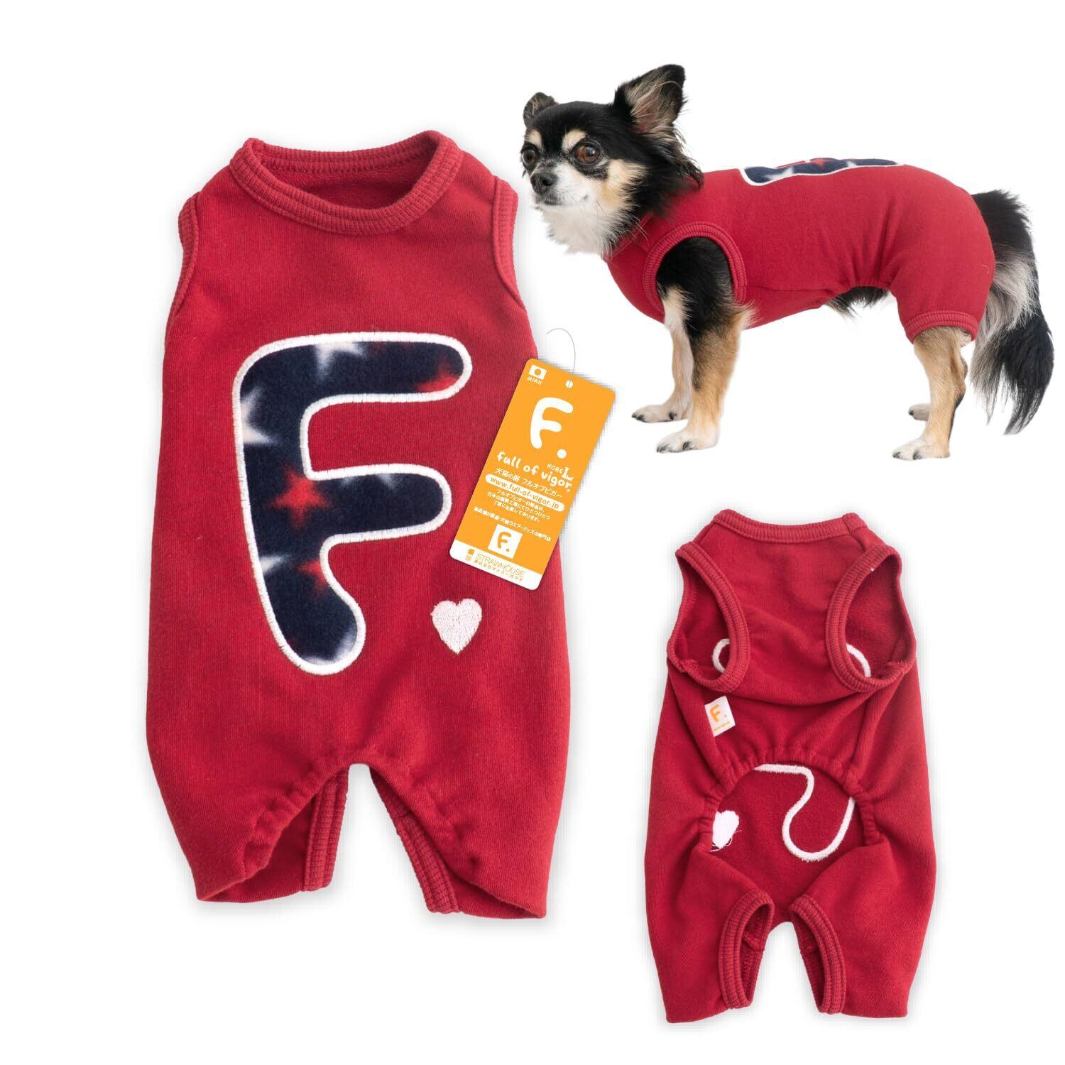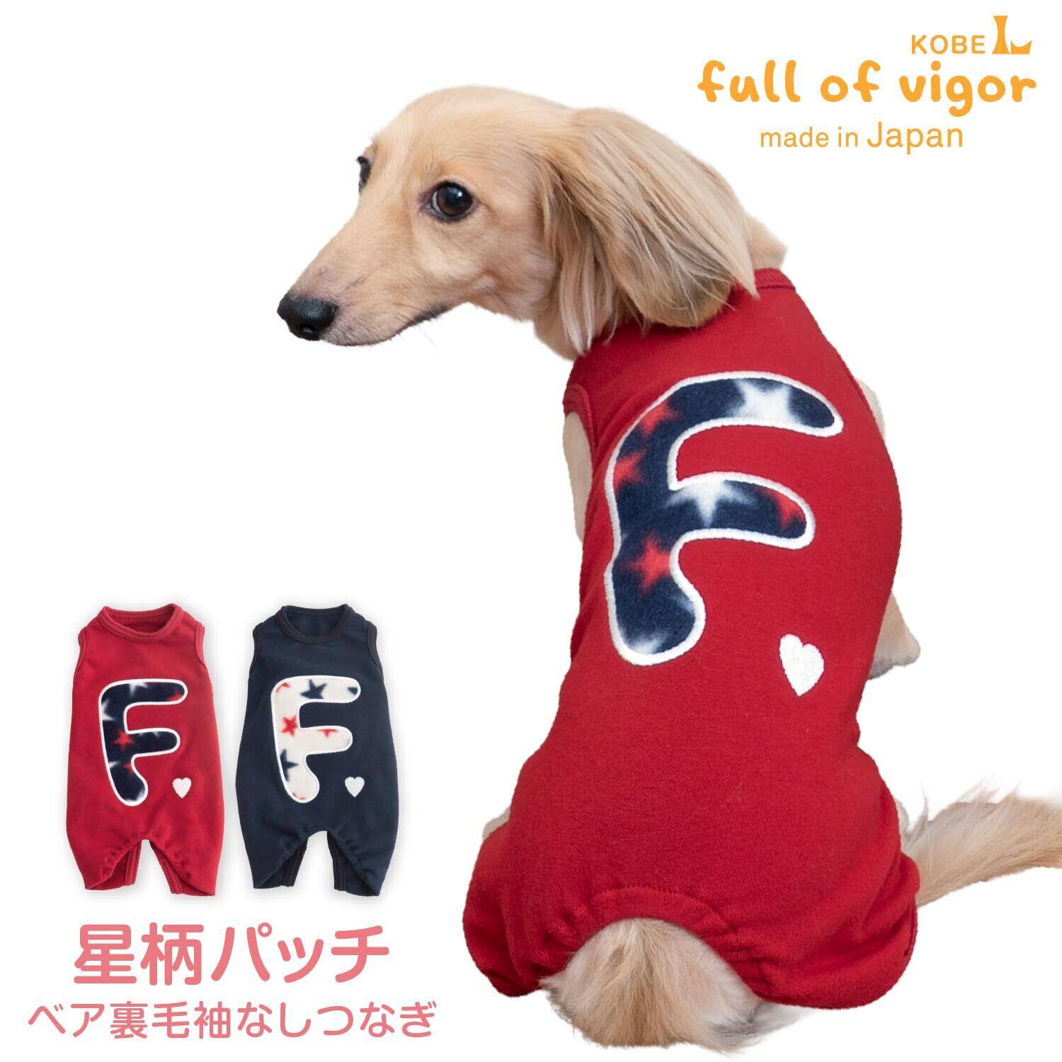 ダックス 星柄 パッチ ベア裏毛 袖なし つなぎ ダックス ロンパース 抜け毛対策 袖なし 犬の服 フルオブビガー 3/レッド DS