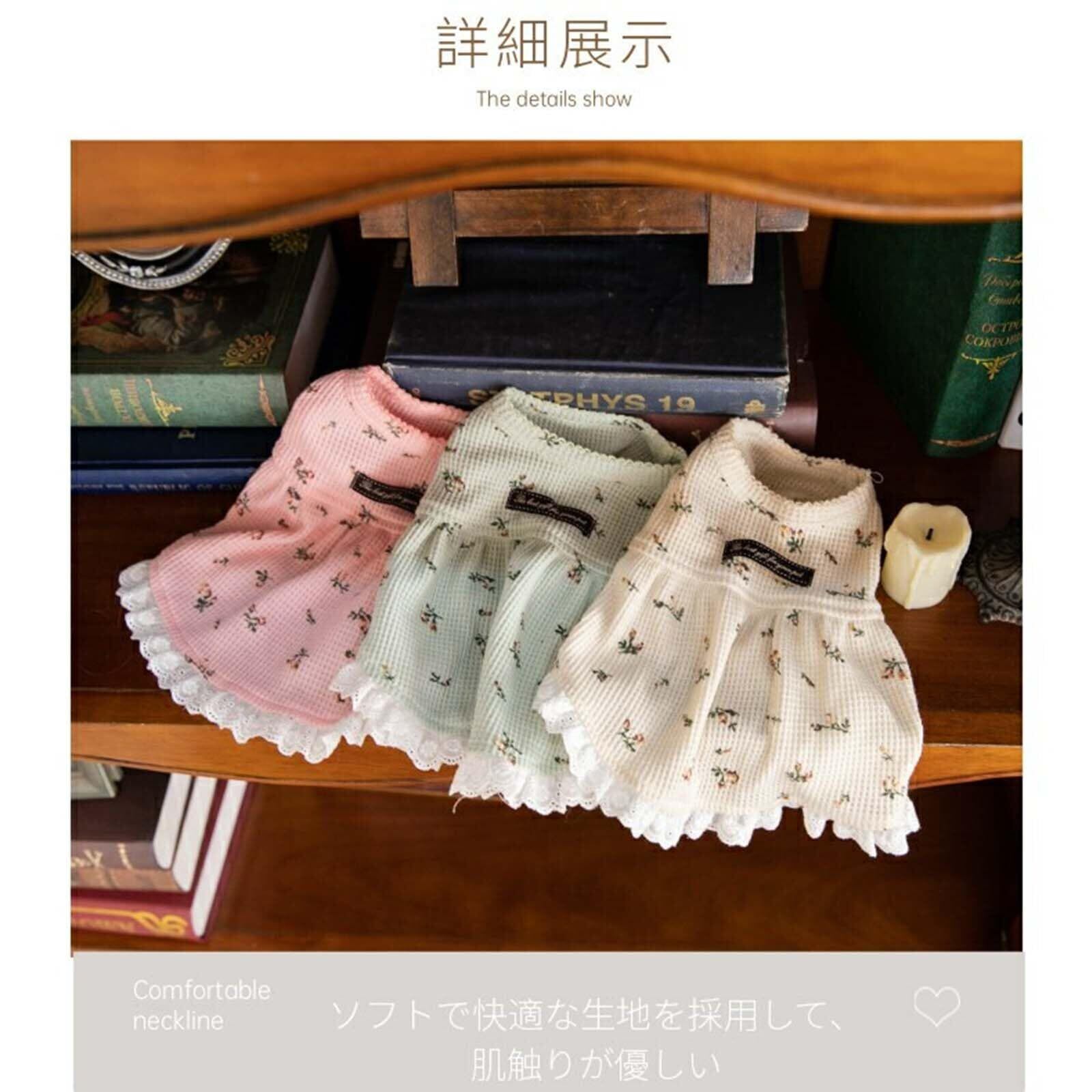 【上品で可愛らしいデザイン】優雅なフラワープリントにレースのアクセントを加えた、愛らしくも上品なデザインがワンちゃんを一層魅力的に演出します。