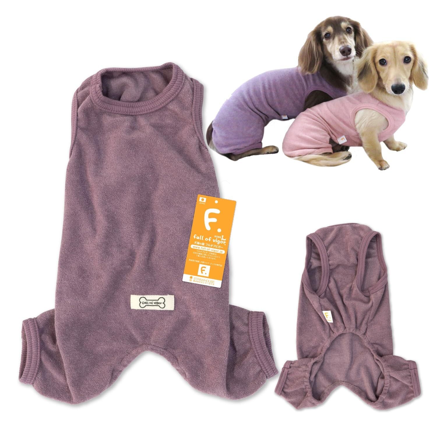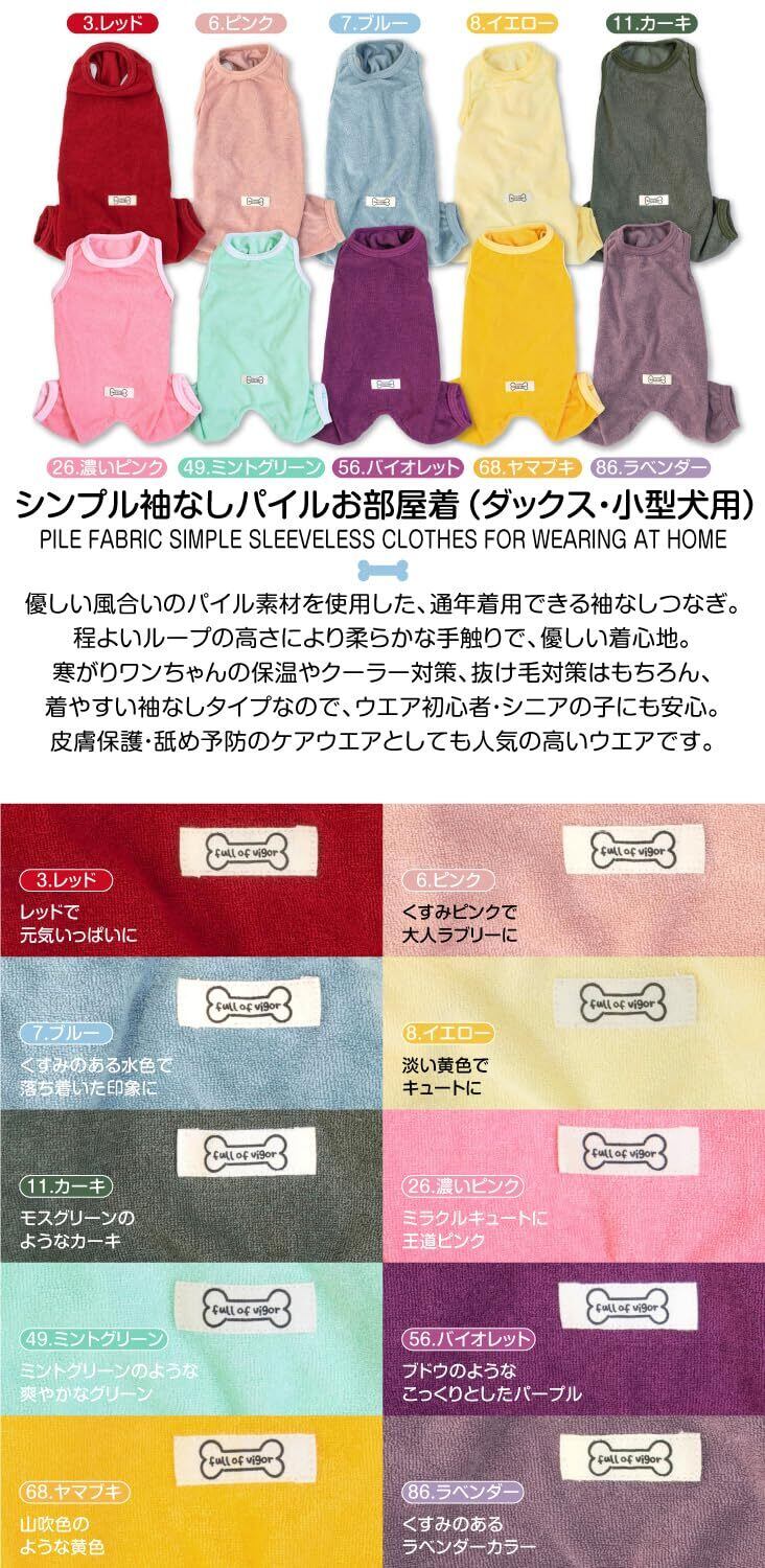 ダックス シンプル 袖なし パイル お部屋着 つなぎ ロンパース 抜け毛対策 犬の服 フルオブビガー 86/ラベンダー DML